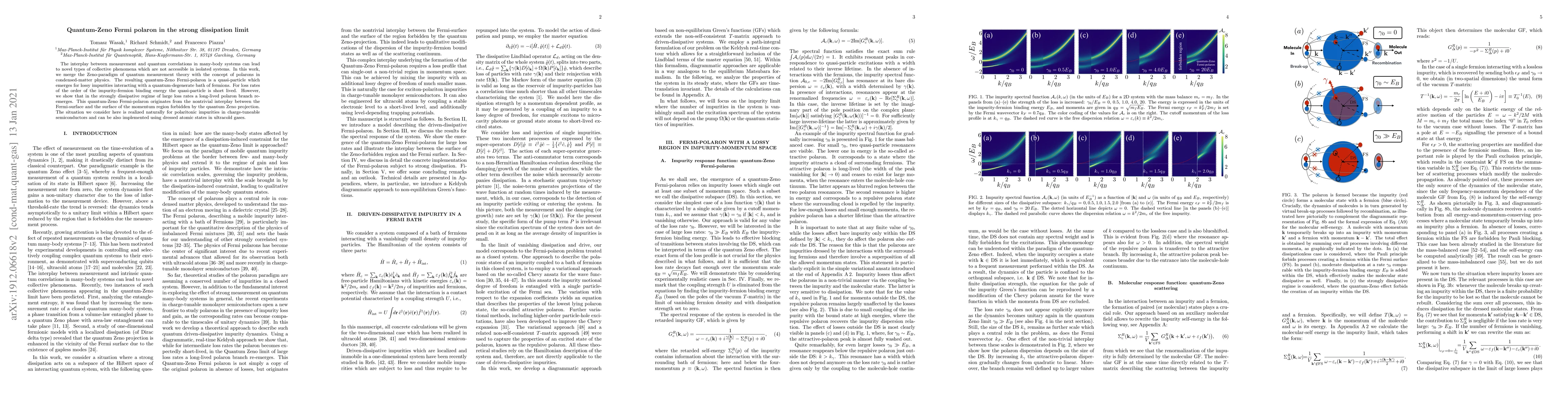 The interplay between measurement and quantum correlations in many-body systems can lead to novel types of collective phenomena which are not accessible in isolated systems. In this work, we merge the Zeno-paradigm of quantum measurement theory with the concept of polarons in condensed-matter physics. The resulting quantum-Zeno Fermi-polaron is a quasi-particle which emerges for lossy impurities interacting with a quantum-degenerate bath of fermions. For loss rates of the order of the impurity-fermion binding energy the quasi-particle is short lived. However, we show that in the strongly dissipative regime of large loss rates a long-lived polaron branch re-emerges. This quantum-Zeno Fermi-polaron originates from the nontrivial interplay between the Fermi-surface and the surface of the momentum region forbidden by the quantum Zeno projection. The situation we consider here is realized naturally for polaritonic impurities in charge-tuneable semiconductors and can be also implemented using dressed atomic states in ultracold gases.