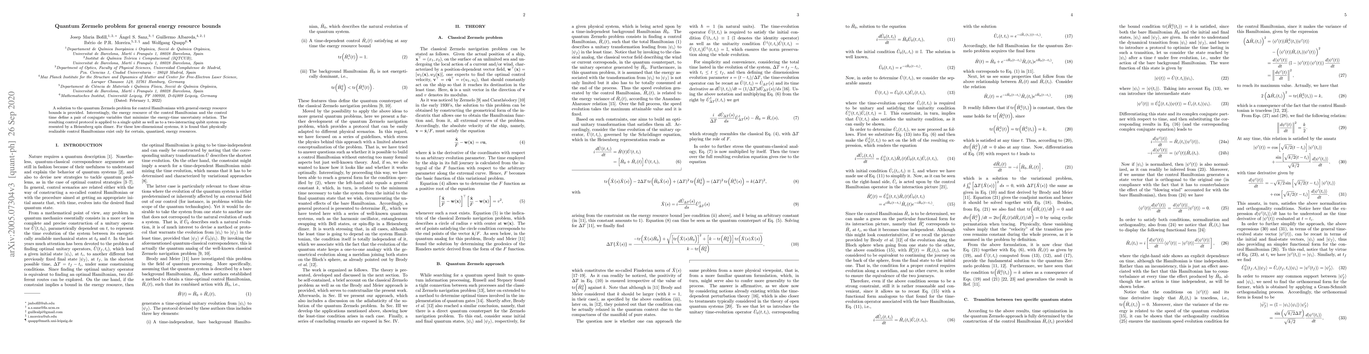 This paper presents a solution to the quantum Zermelo problem for control Hamiltonians with general energy resource bounds, demonstrating that the energy resource and control time act as conjugate variables minimizing the energy-time uncertainty relation. The proposed control protocol is tested on single and two-qubit systems, revealing that only quantized energy resources allow for physically realizable control Hamiltonians.