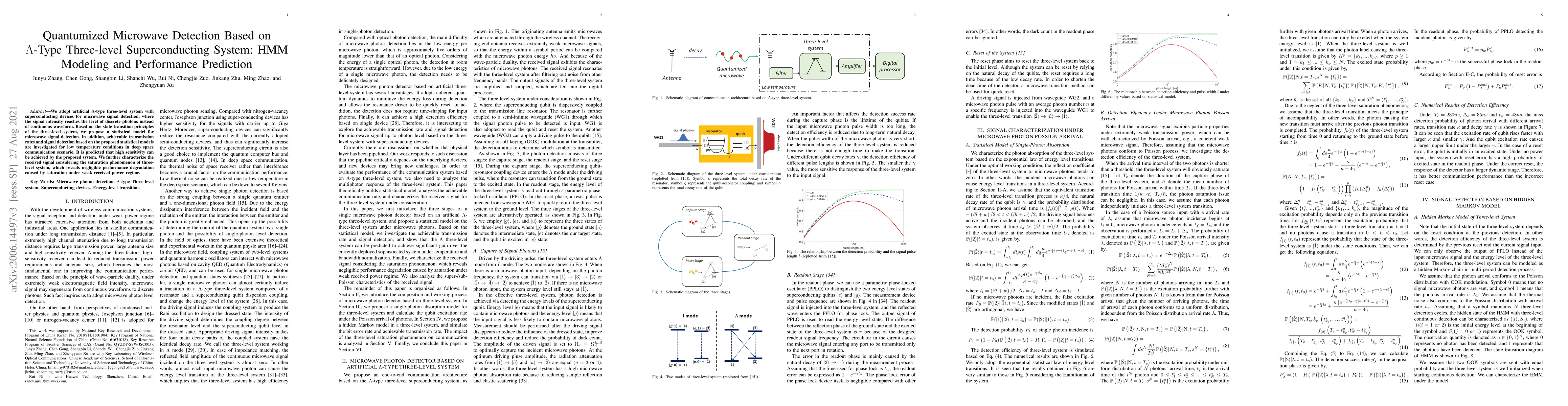 We adopt artificial $\Lambda$-type three-level system with superconducting devices for microwave signal detection, where the signal intensity reaches the level of discrete photons instead of continuous waveform. Based on the state transition principles of the three-level system, we propose a statistical model for microwave signal detection. Moreover, we investigate the achievable transmission rate and signal detection based on the statistical model. It is predicted that the proposed detection can achieve significantly higher sensitivity compared with the currently deployed 4G/5G communication system. We further characterize the received signal considering the saturation phonomenon, which reveals negligible performance degradation caused by saturation under weak received power regime.