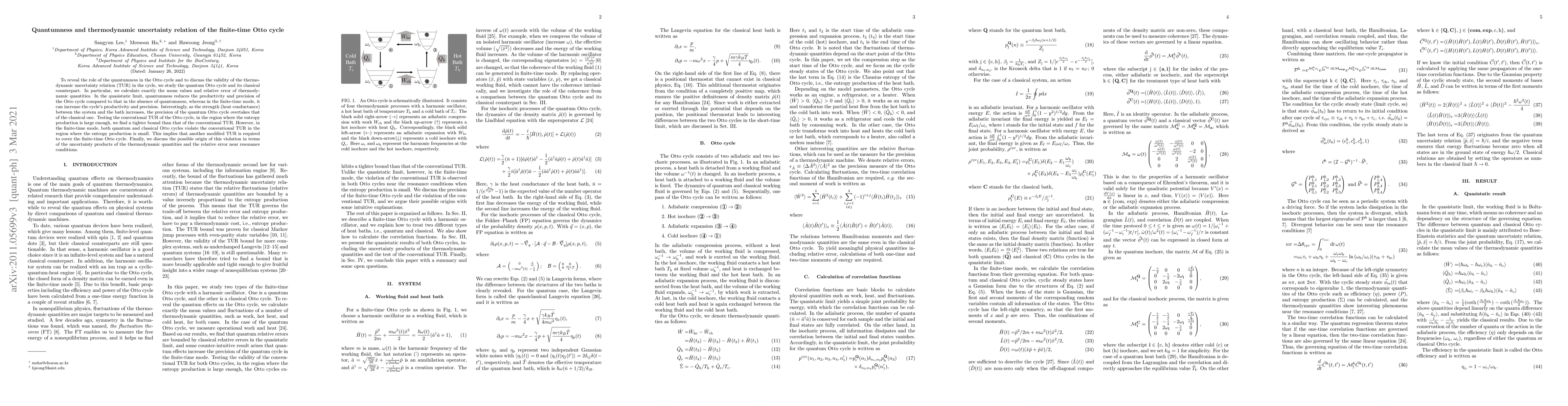 This paper investigates the quantumness effects in the Otto cycle, finding that quantumness reduces productivity and precision in quasistatic limits but can enhance these in finite-time operations. It also reveals that the thermodynamic uncertainty relation (TUR) needs modification for finite-time cycles, particularly when entropy production is small.