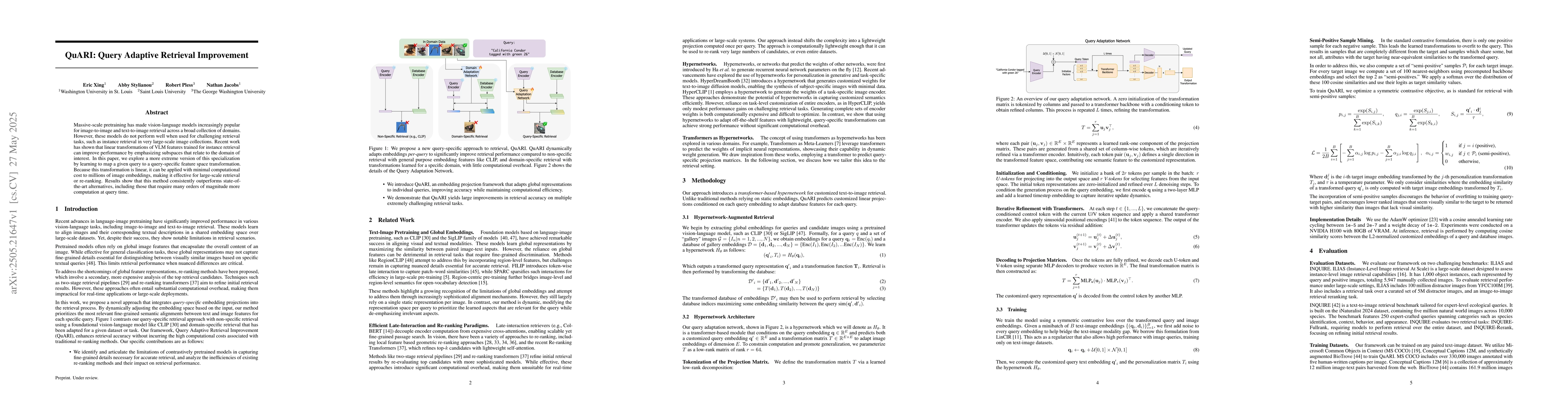 QuARI presents a novel query-adaptive feature space transformation technique for vision-language models, enhancing retrieval performance with minimal computational overhead.