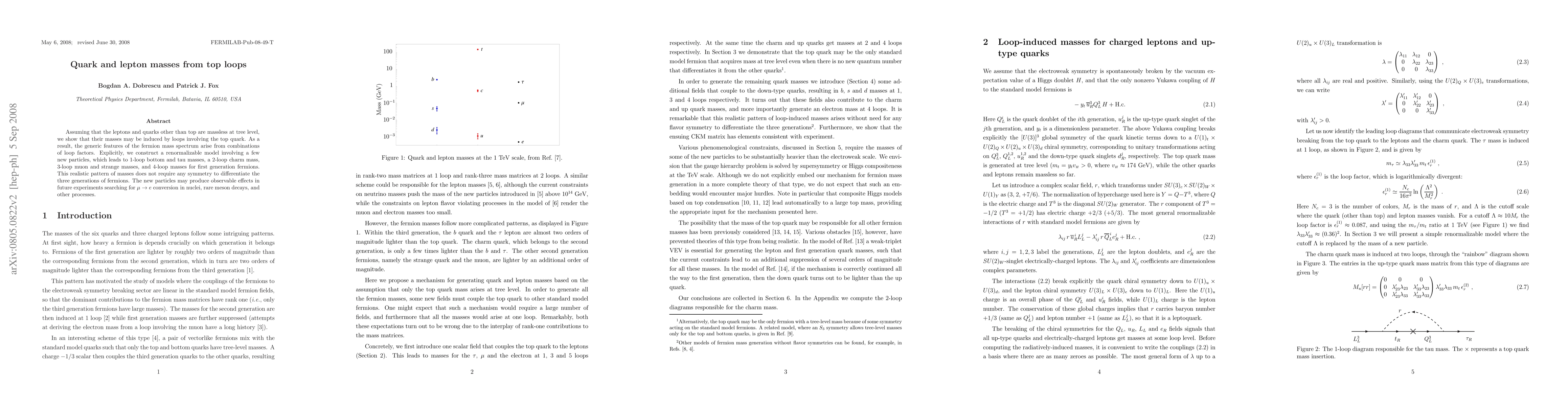 This paper proposes that top quark loops induce masses in other particles, resulting in a realistic fermion mass spectrum without requiring symmetry. This idea has implications for future experiments searching for rare particle decays.