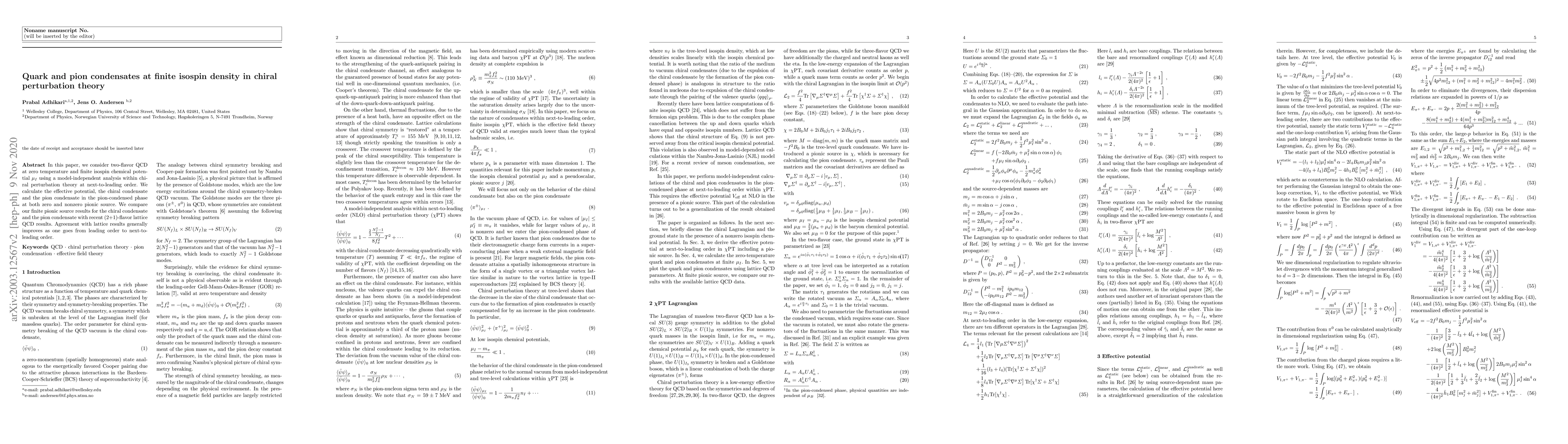 This paper examines two-flavor QCD at zero temperature and finite isospin density using chiral perturbation theory, calculating the effective potential, chiral condensate, and pion condensate. Results are compared with lattice QCD findings, showing strong agreement.