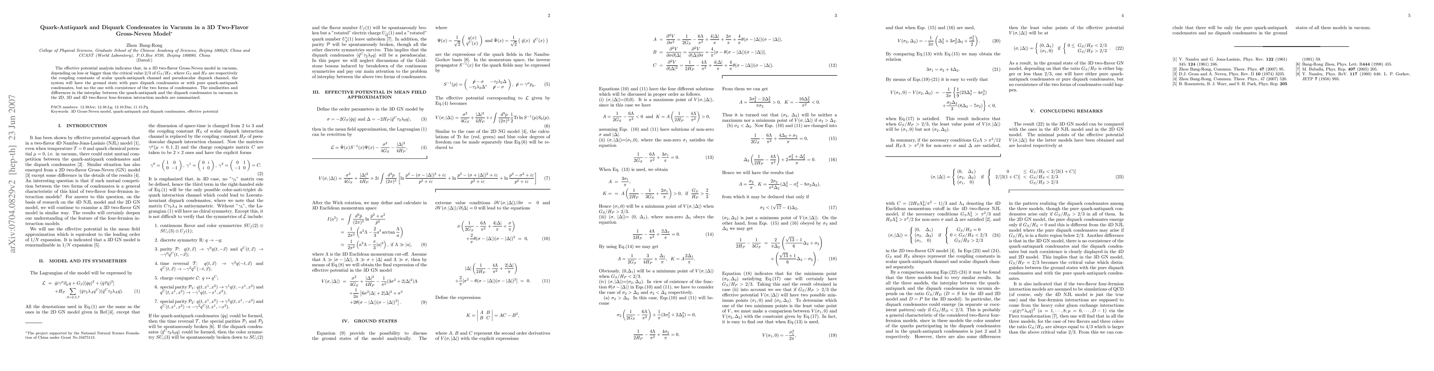 This research explores the vacuum state in a 3D two-flavor Gross-Neveu model, finding that depending on the ratio of $G_S/H_P$, the system exhibits either pure quark-antiquark or diquark condensates, but not both simultaneously. The study also compares these findings with similar models in 2D, 3D, and 4D dimensions.