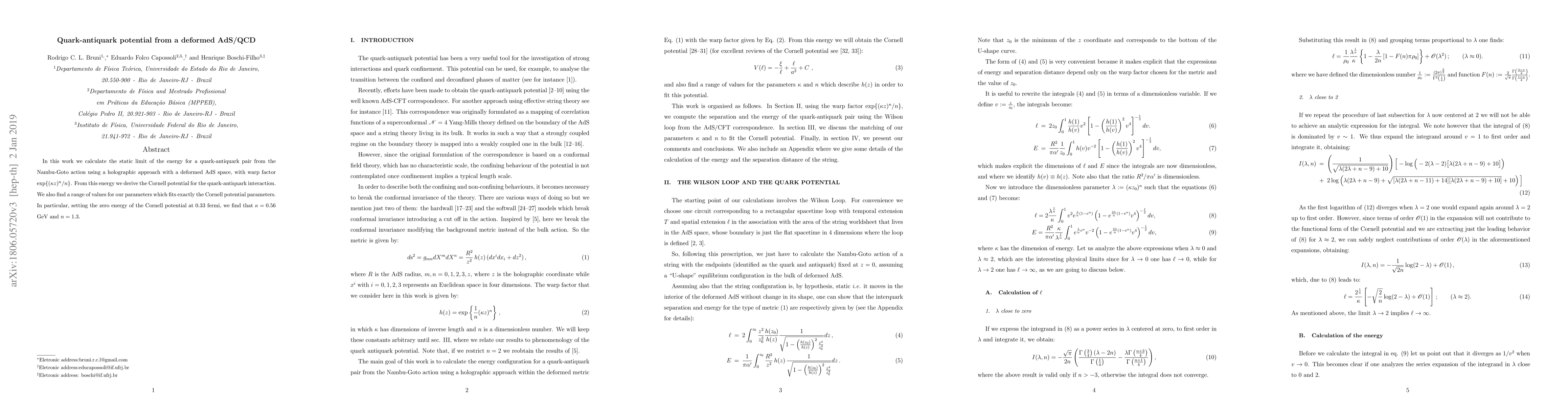 The paper introduces a deformed AdS/QCD model that calculates the quark-antiquark potential, successfully reproducing the Cornell potential's parameters.