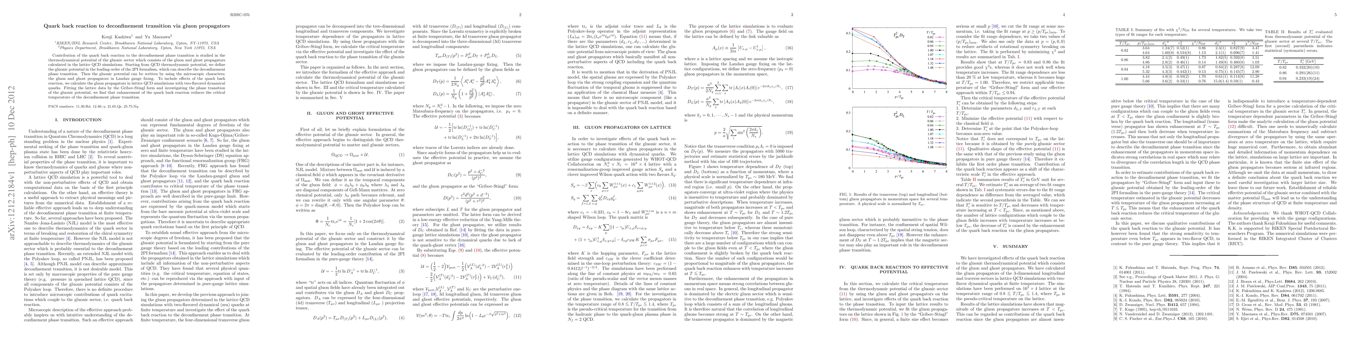 This paper investigates the quark back reaction's influence on the deconfinement phase transition using lattice QCD simulations. It finds that enhanced quark back reaction lowers the critical temperature for the deconfinement transition by analyzing the gluonic potential derived from gluon and ghost propagators.