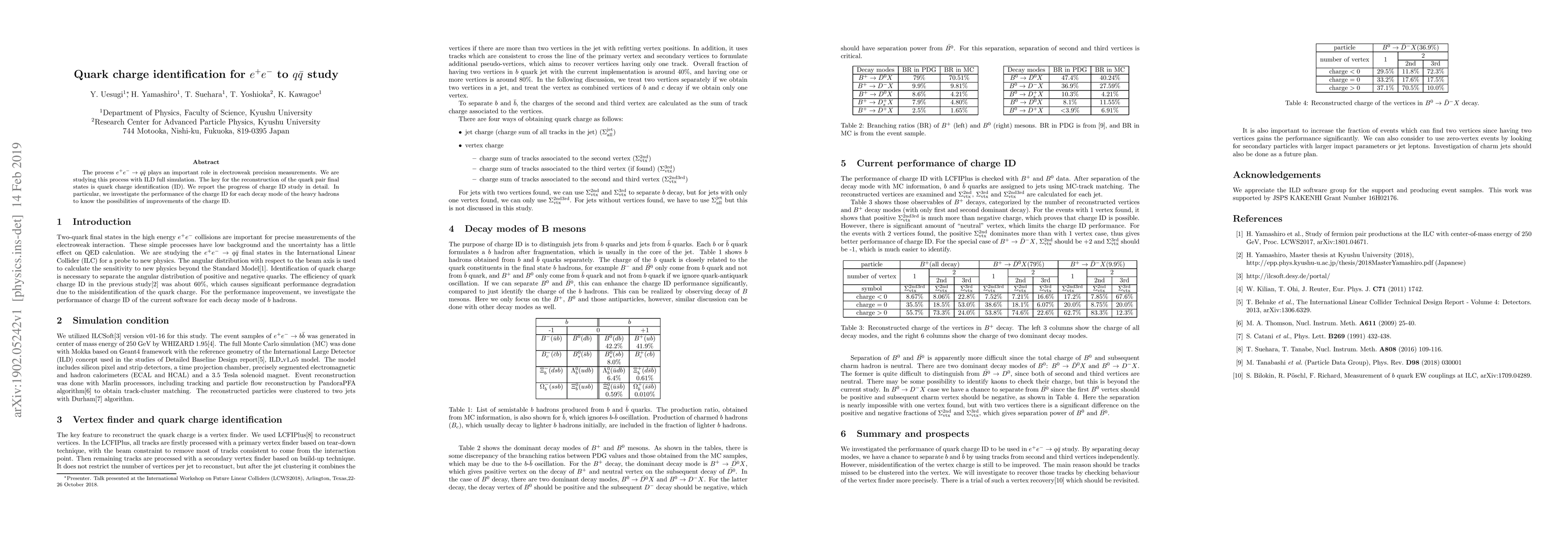 The use of LCFI Plus for charge ID and separation of decay modes using MC information.