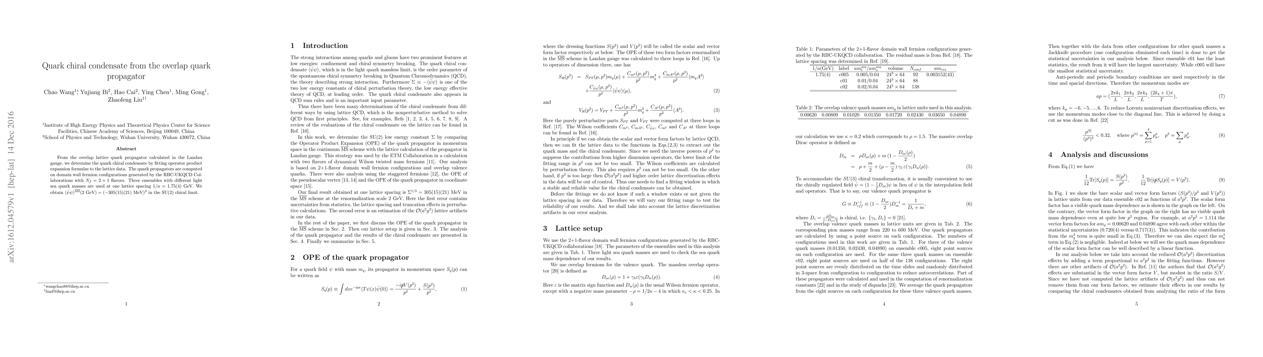 The paper presents a detailed analysis of the overlap quark propagator in the Landau gauge to extract the quark chiral condensate, employing domain wall fermion configurations with $N_f=2+1$ flavors.