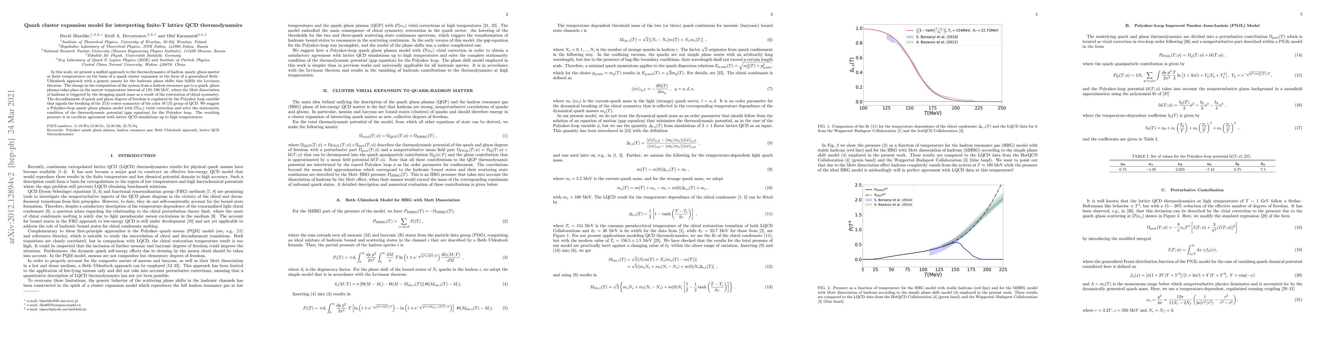 We present a unified approach to the thermodynamics of hadron-quark-gluon matter at finite temperatures on the basis of a quark cluster expansion in the form of a generalized Beth-Uhlenbeck approach with a generic ansatz for the hadronic phase shifts that fulfills the Levinson theorem. The change in the composition of the system from a hadron resonance gas to a quark-gluon plasma takes place in the narrow temperature interval of $150 - 185$ MeV where the Mott dissociation of hadrons is triggered by the dropping quark mass as a result of the restoration of chiral symmetry. The deconfinement of quark and gluon degrees of freedom is regulated by the Polyakov loop variable that signals the breaking of the $Z(3)$ center symmetry of the color $SU(3)$ group of QCD. We suggest a Polyakov-loop quark-gluon plasma model with $\mathcal{O}(\alpha_s)$ virial correction and solve the stationarity condition of the thermodynamic potential (gap equation) for the Polyakov loop. The resulting pressure is in excellent agreement with lattice QCD simulations up to high temperatures.