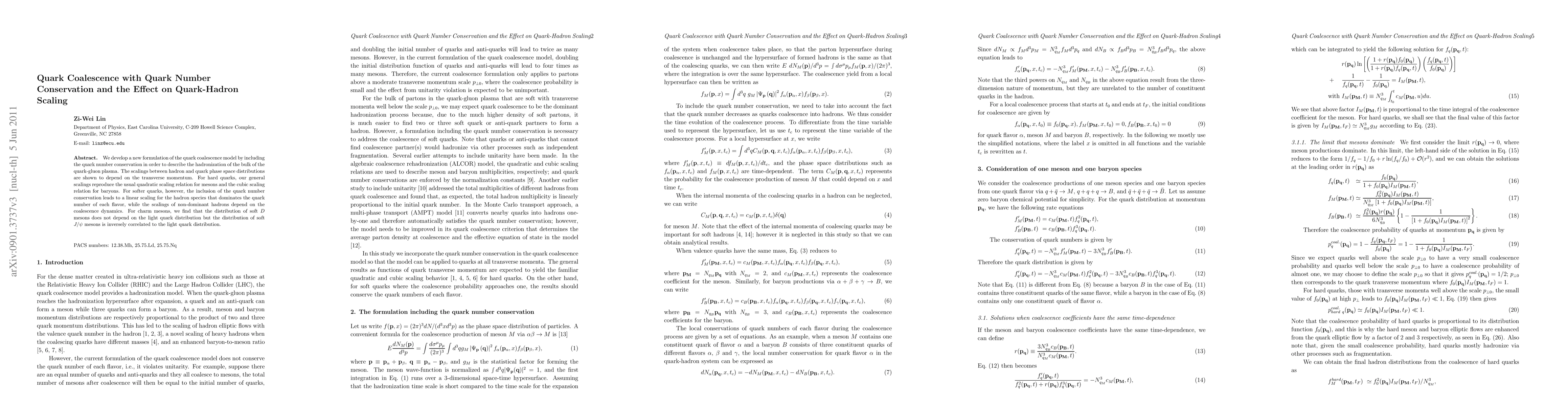 We develop a new formulation of the quark coalescence model by including the quark number conservation in order to describe the hadronization of the bulk of the quark-gluon plasma. The scalings between hadron and quark phase space distributions are shown to depend on the transverse momentum. For hard quarks, our general scalings reproduce the usual quadratic scaling relation for mesons and the cubic scaling relation for baryons. For softer quarks, however, the inclusion of the quark number conservation leads to a linear scaling for the hadron species that dominates the quark number of each flavor, while the scalings of non-dominant hadrons depend on the coalescence dynamics. For charm mesons, we find that the distribution of soft $D$ mesons does not depend on the light quark distribution but the distribution of soft $J/\psi$ mesons is inversely correlated to the light quark distribution.