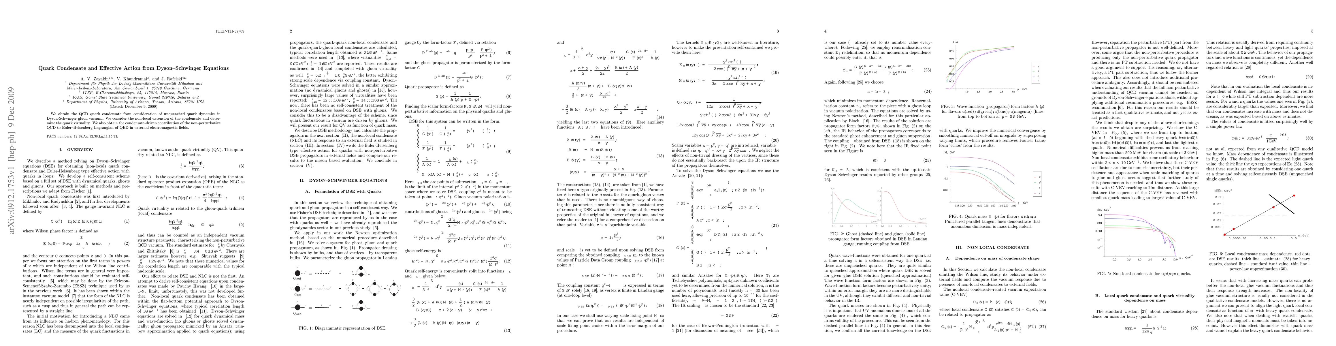 We obtain the QCD quark condensate from consideration of unquenched quark dynamics in Dyson-Schwinger gluon vacuum. We consider the non-local extension of the condensate and determine the quark virtuality. We also obtain the condensate-driven contribution of the non-perturbative QCD to Euler--Heisenberg Lagrangian of QED in external electromagnetic fields.