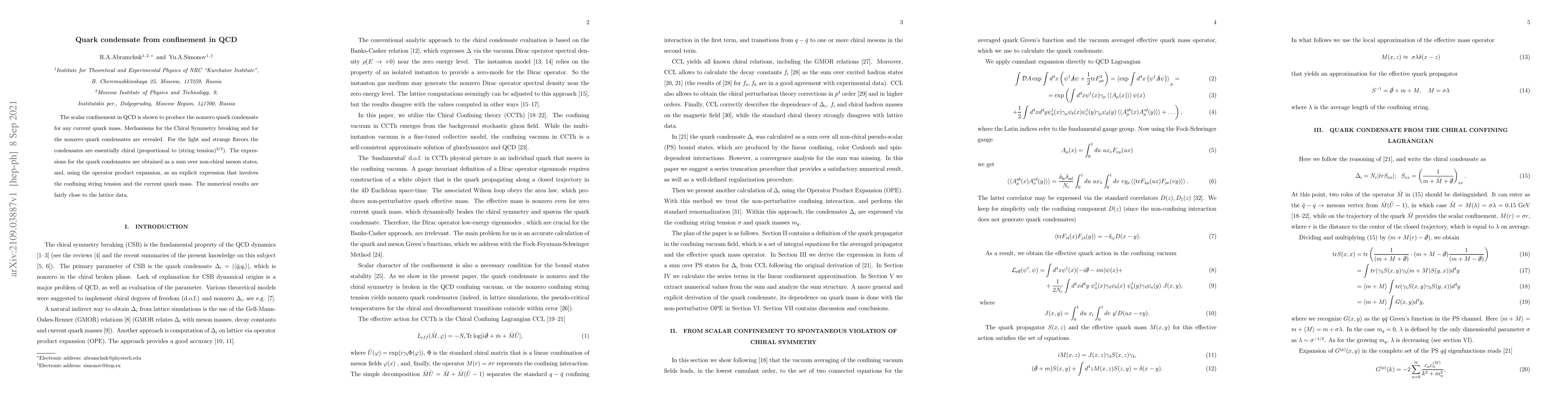 Researchers found that scalar confinement in Quantum Chromodynamics (QCD) produces nonzero quark condensates for any current quark mass, revealing mechanisms for Chiral Symmetry breaking and providing new expressions for the quark condensates.