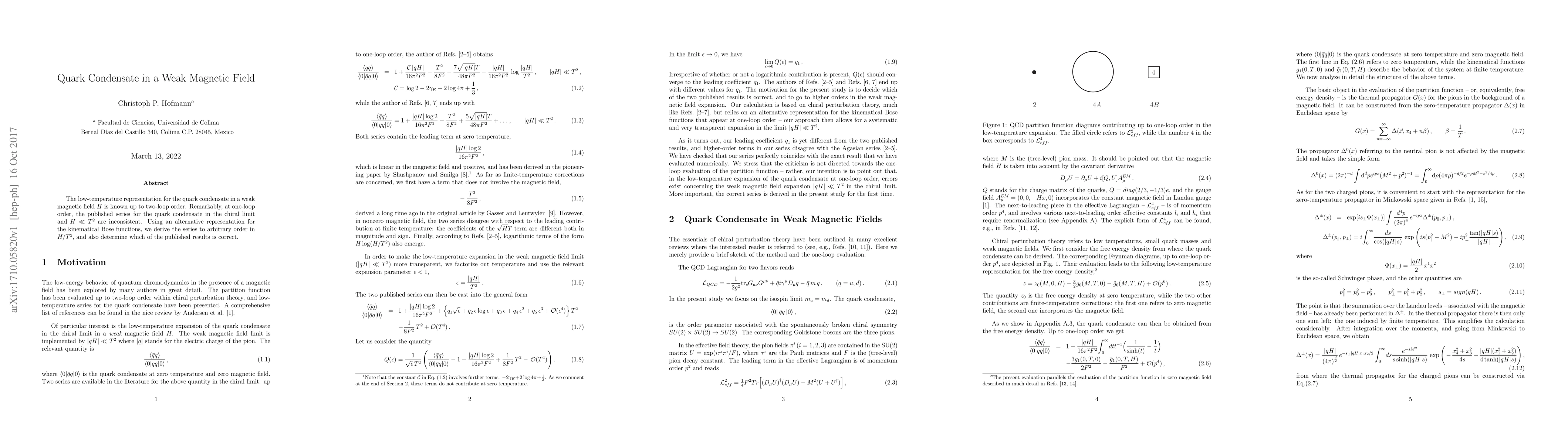 Researchers re-evaluate the quark condensate in a weak magnetic field, resolving inconsistencies at one-loop order and deriving a corrected series to arbitrary order.