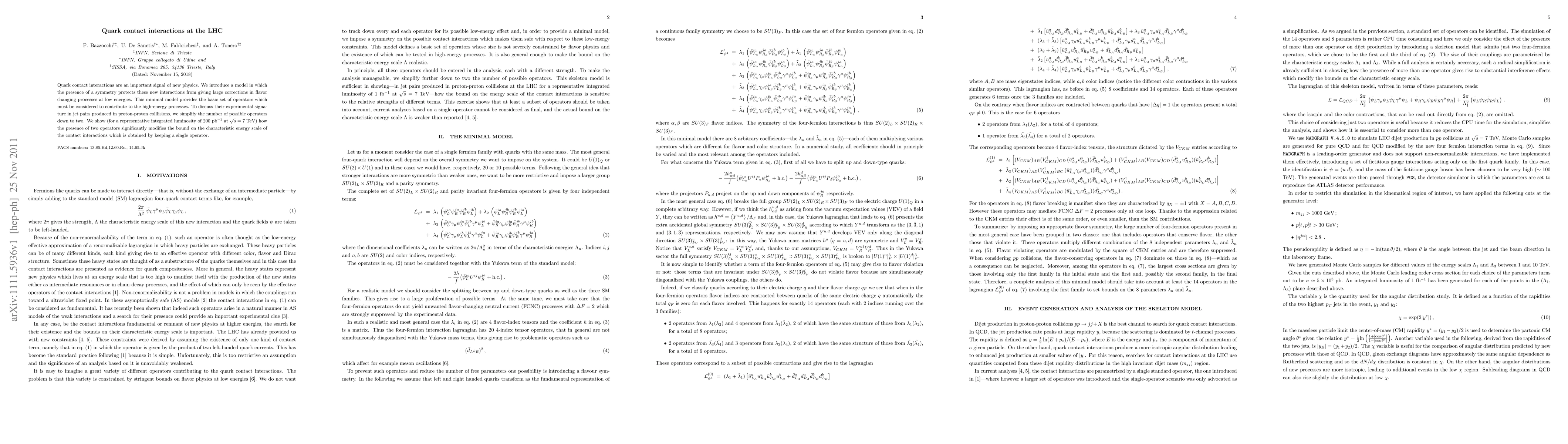 This paper proposes a minimal model for quark contact interactions at the LHC, showing that two operators significantly modify the bound on their characteristic energy scale.