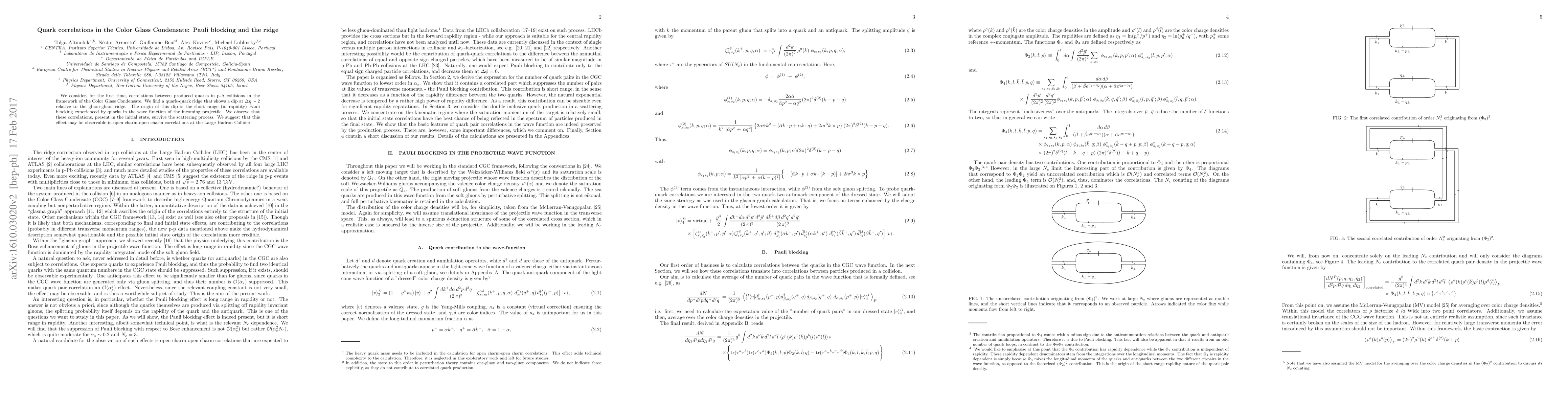 We consider, for the first time, correlations between produced quarks in p-A collisions in the framework of the Color Glass Condensate. We find a quark-quark ridge that shows a dip at $\Delta\eta\sim 2$ relative to the gluon-gluon ridge. The origin of this dip is the short range (in rapidity) Pauli blocking experienced by quarks in the wave function of the incoming projectile. We observe that these correlations, present in the initial state, survive the scattering process. We suggest that this effect may be observable in open charm-open charm correlations at the Large Hadron Collider.