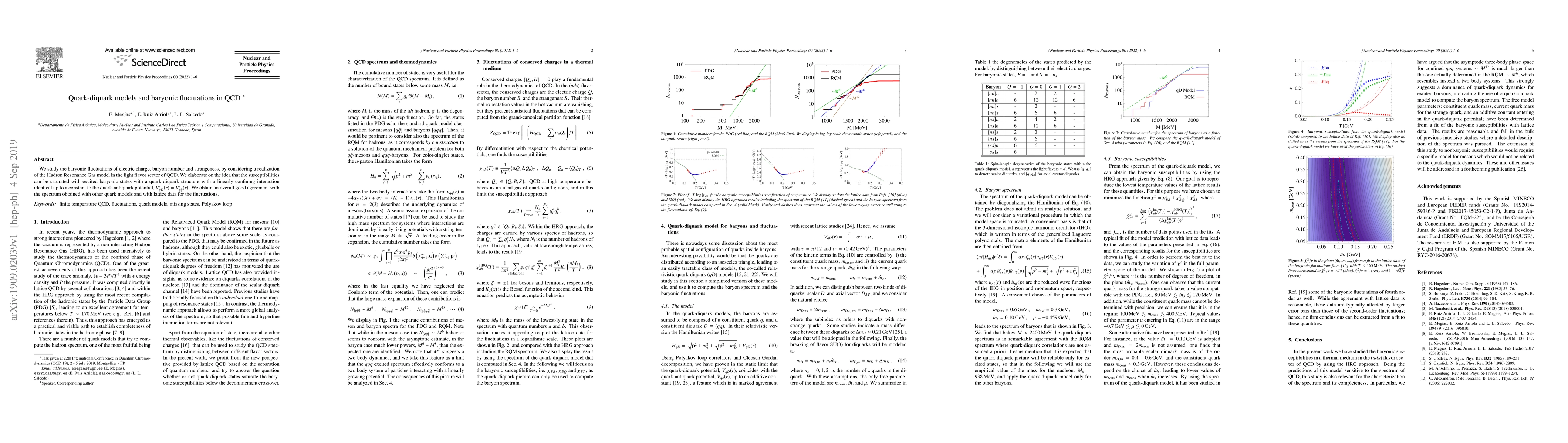 The paper investigates baryonic charge, baryon number, and strangeness fluctuations in QCD's light flavor sector using a Hadron Resonance Gas model. It proposes that these susceptibilities can be explained by excited baryonic states with a quark-diquark structure, confined similarly to quark-antiquark pairs. The model shows good agreement with data from other quark models and lattice QCD.