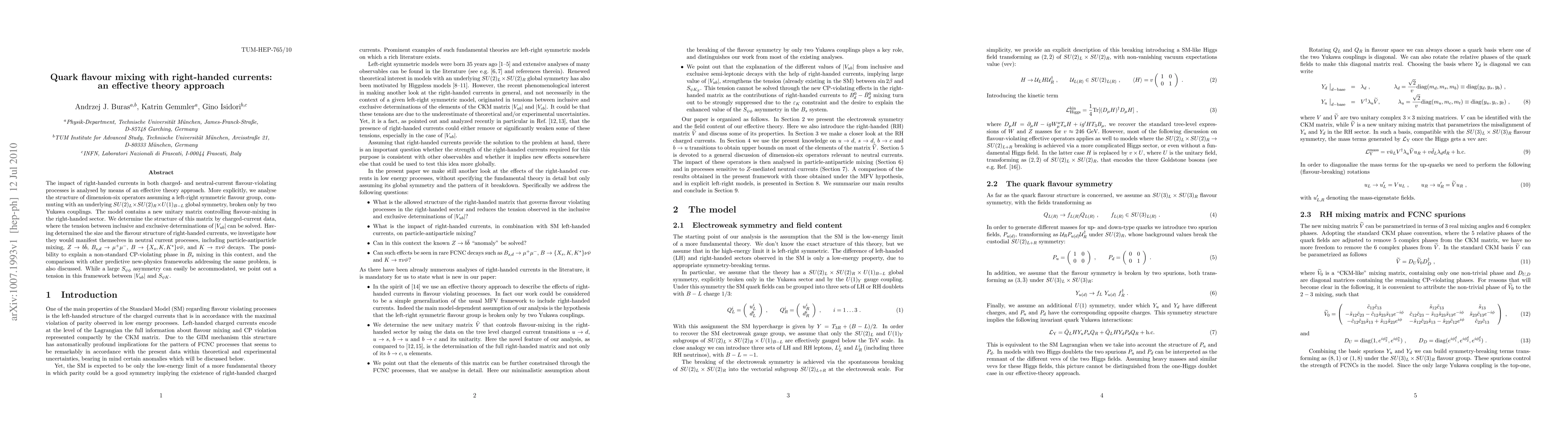 This research uses an effective theory approach to analyze right-handed currents' impact on charged- and neutral-current flavor-violating processes. It introduces a new unitary matrix for right-handed flavour mixing, resolving tension in inclusive vs. exclusive |V_{ub}| determinations. The study also explores these currents' effects on various decays, discussing the possibility of explaining a non-standard CP-violating phase in B_s mixing. While it accommodates large S_{ψφ} asymmetry, a tension between |V_{ub}| and S_{ψK} is pointed out.