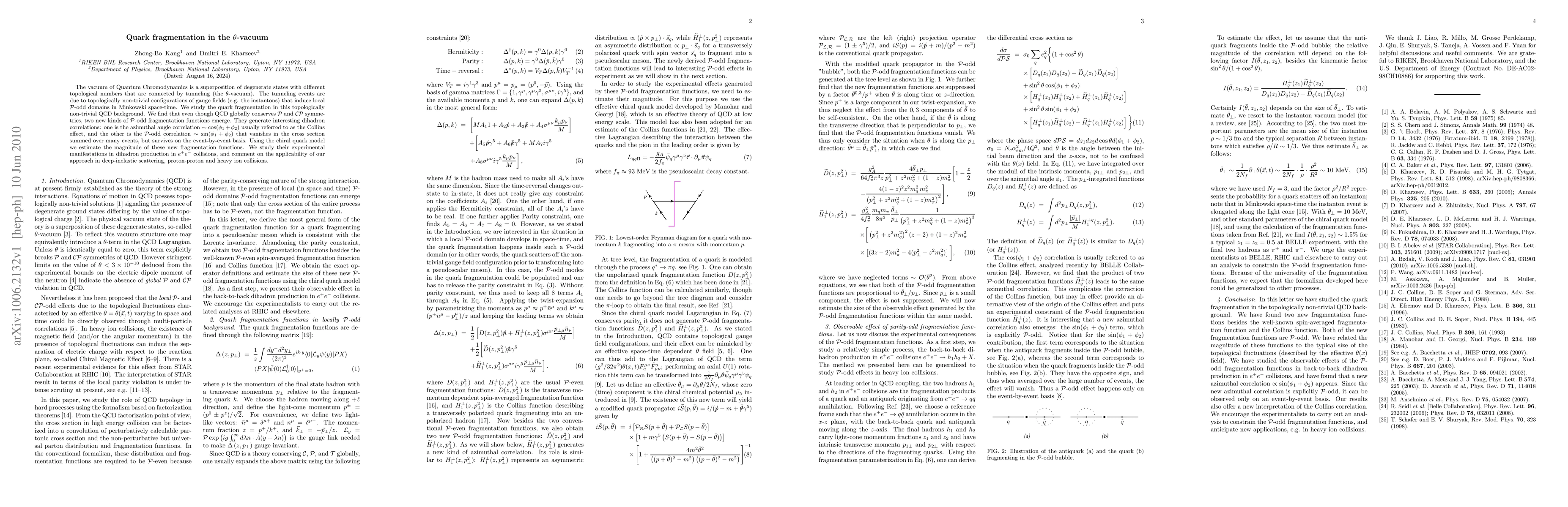 This paper investigates quark fragmentation in the topologically non-trivial $\theta$-vacuum of Quantum Chromodynamics, revealing two new $\p$-odd fragmentation functions that generate unique dihadron correlations, including the Collins effect and a $\p$-odd correlation surviving on an event-by-event basis. The study estimates these functions' magnitudes and discusses their implications in various high-energy physics processes.