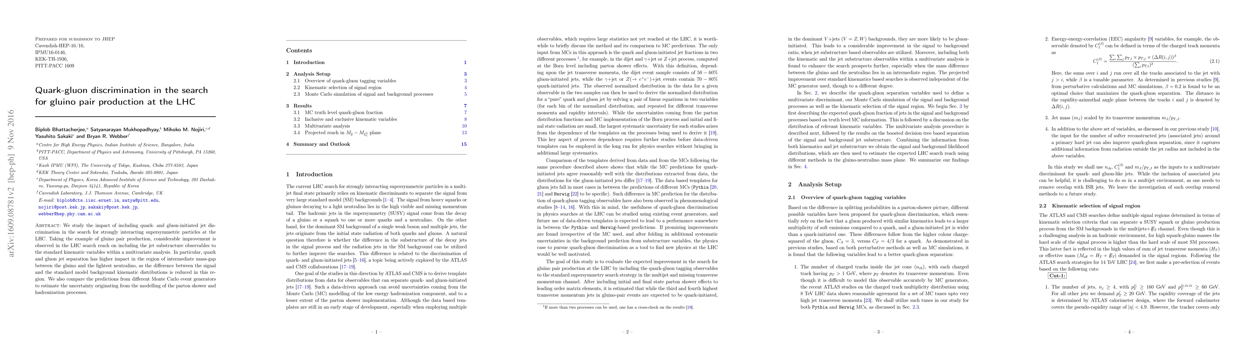 We study the impact of including quark- and gluon-initiated jet discrimination in the search for strongly interacting supersymmetric particles at the LHC. Taking the example of gluino pair production, considerable improvement is observed in the LHC search reach on including the jet substructure observables to the standard kinematic variables within a multivariate analysis. In particular, quark and gluon jet separation has higher impact in the region of intermediate mass-gap between the gluino and the lightest neutralino, as the difference between the signal and the standard model background kinematic distributions is reduced in this region. We also compare the predictions from different Monte Carlo event generators to estimate the uncertainty originating from the modelling of the parton shower and hadronization processes.
