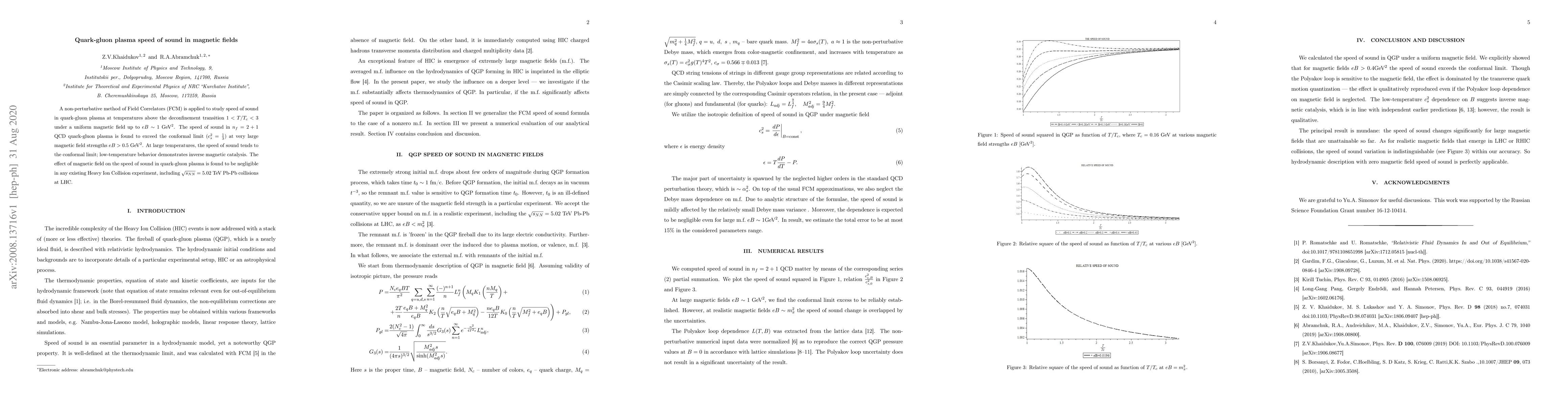 This study employs a non-perturbative method to determine the speed of sound in quark-gluon plasma under a magnetic field, finding it exceeds the conformal limit at strong fields. The speed approaches the limit at high temperatures, while magnetic fields have negligible effect on plasma speed in current heavy ion collisions.