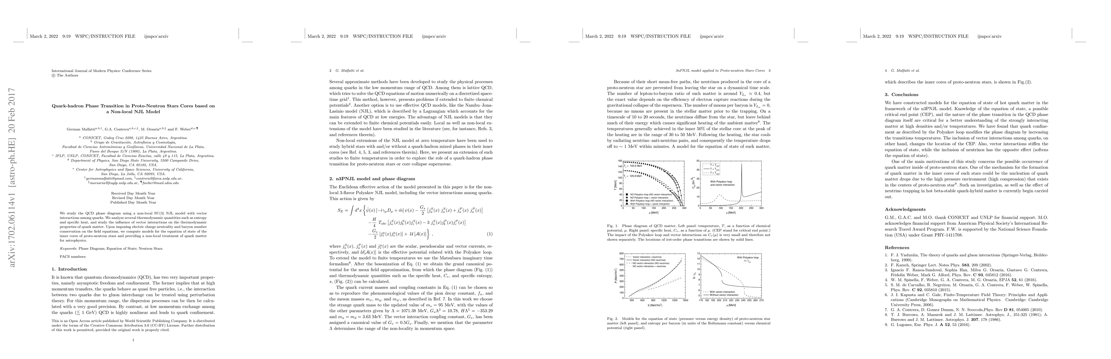 This paper investigates the quark-hadron phase transition in proto-neutron star cores using a non-local SU(3) NJL model with vector interactions. The study analyzes thermodynamic properties and computes the equation of state for quark matter, providing insights into the inner cores of proto-neutron stars.