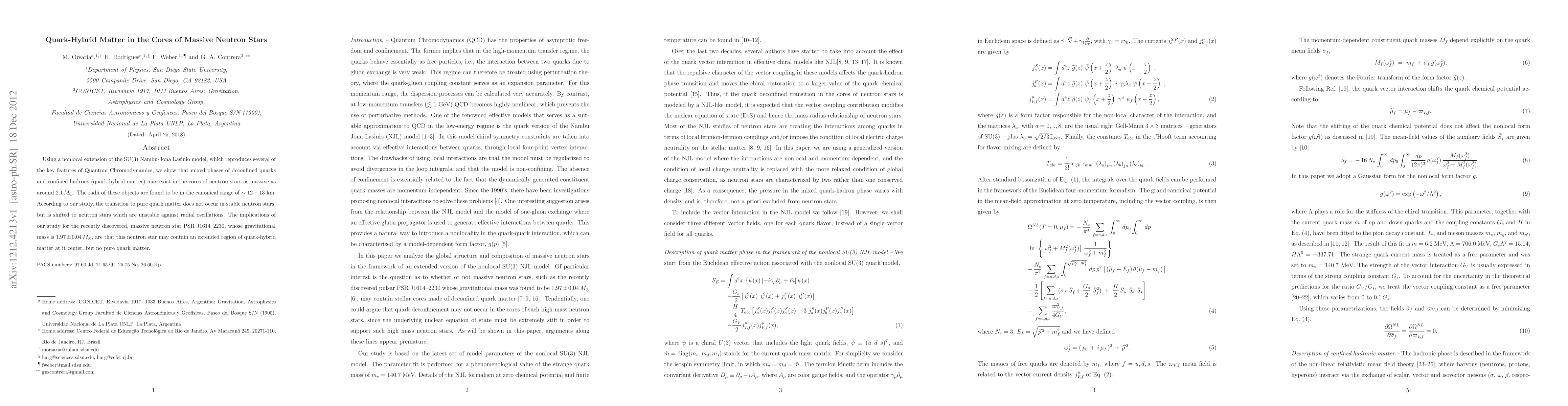 This paper demonstrates that quark-hybrid matter, a mixture of deconfined quarks and hadrons, can exist in the cores of massive neutron stars up to around 2.1 M_Sun, with radii of approximately 12-13 km. The study suggests that pure quark matter does not form in stable neutron stars, but rather in those unstable against radial oscillations.