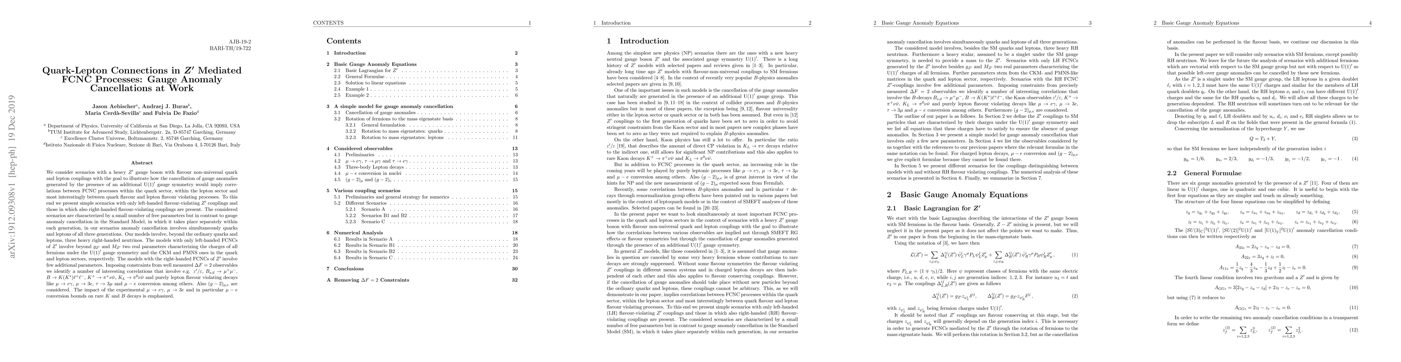 We consider scenarios with a heavy $Z^\prime$ gauge boson with flavour non-universal quark and lepton couplings with the goal to illustrate how the cancellation of gauge anomalies generated by the additional U(1)$^\prime$ gauge symmetry would imply correlations between FCNC processes in the quark sector, in the lepton sector and most interestingly between quark flavour and lepton flavour violating processes. We present scenarios with only left-handed flavour-violating $Z^\prime$ couplings and those with also right-handed flavour-violating couplings. These are characterized by a small number of free parameters but in contrast to gauge anomaly cancellation in the Standard Model, that takes place separately within each generation, in our scenarios anomaly cancellation involves simultaneously quarks and leptons of all three generations. Our models involve, beyond the ordinary quarks and leptons, three heavy right-handed neutrinos. The models with only left-handed FCNCs of $Z^\prime$ involve beyond $g_{Z^\prime}$ and $M_{Z^\prime}$ two real parameters characterizing the charges of all fermions under the U(1)$^\prime$ gauge symmetry and the CKM and PMNS ones in the quark and lepton sectors, respectively. The models with the right-handed FCNCs of $Z^\prime$ involve few additional parameters. Imposing constraints from well measured $\Delta F=2$ observables we identify interesting correlations that involve e.g. $\varepsilon'/\varepsilon$, $B_{s,d}\to\mu^+\mu^-$, $B\to K(K^*) \ell^+\ell^-$, $K^+\rightarrow\pi^+\nu\bar\nu$, $K_{L}\rightarrow\pi^0\nu\bar\nu$ and purely lepton flavour violating decays like $\mu\to e\gamma$, $\mu\to 3 e$, $\tau\to 3\mu$ and $\mu-e$ conversion} among others. Also $(g-2)_{\mu,e}$ are considered. The impact of the experimental $\mu\to e\gamma$, $\mu\to 3 e$ and in particular $\mu-e$ conversion bounds on rare $K$ and $B$ decays is emphasized.