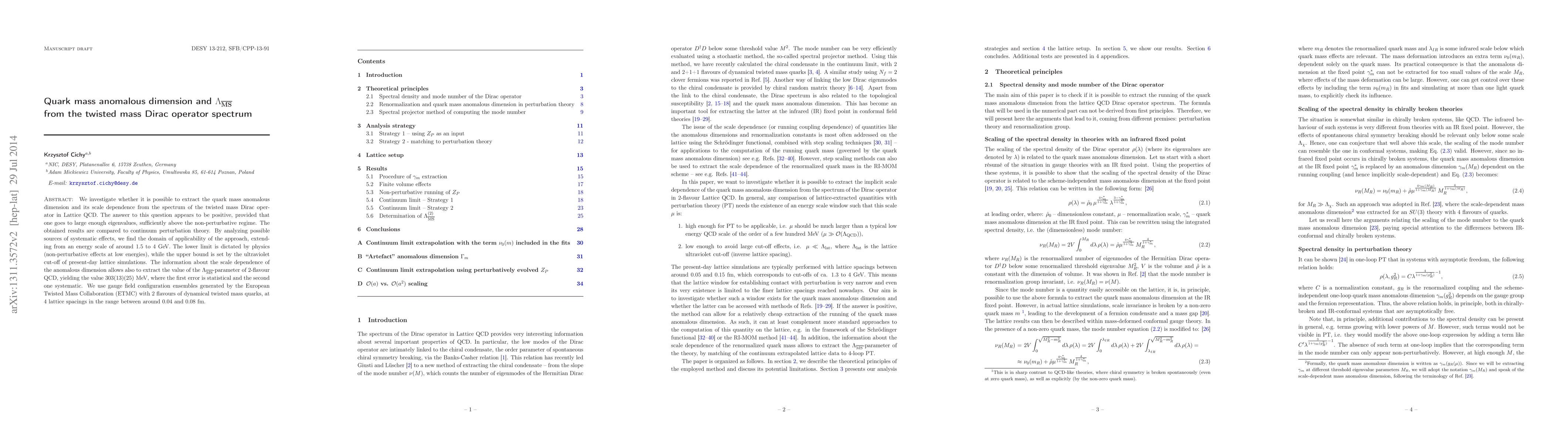 Researchers found that large eigenvalues of the twisted mass Dirac operator can reveal quark mass anomalous dimension and its scale dependence, allowing for the extraction of the $ extit{ ext{MS}}$-parameter in lattice QCD, with a value of $303(13)(25)$ MeV.