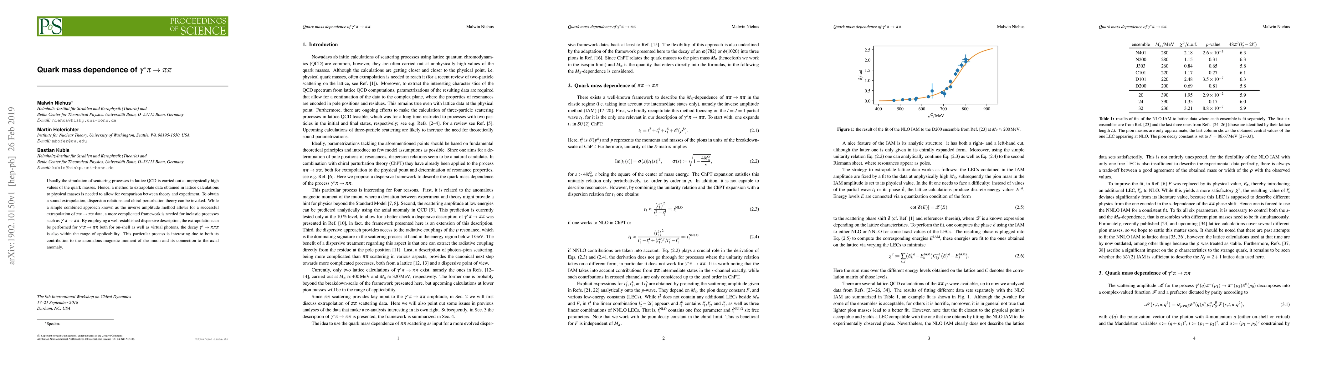 Usually the simulation of scattering processes in lattice QCD is carried out at unphysically high values of the quark masses. Hence, a method to extrapolate data obtained in lattice calculations to physical masses is needed to allow for comparison between theory and experiment. To obtain a sound extrapolation, dispersion relations and chiral perturbation theory can be invoked. While a simple combined approach known as the inverse amplitude method allows for a successful extrapolation of $\pi\pi\to\pi\pi$ data, a more complicated framework is needed for inelastic processes such as $\gamma^{*}\pi\to\pi\pi$. By employing a well-established dispersive description, the extrapolation can be performed for $\gamma^{*}\pi\to\pi\pi$ both for on-shell as well as virtual photons, the decay $\gamma^*\rightarrow\pi\pi\pi$ is also within the range of applicability. This particular process is interesting due to both its contribution to the anomalous magnetic moment of the muon and its connection to the axial anomaly.