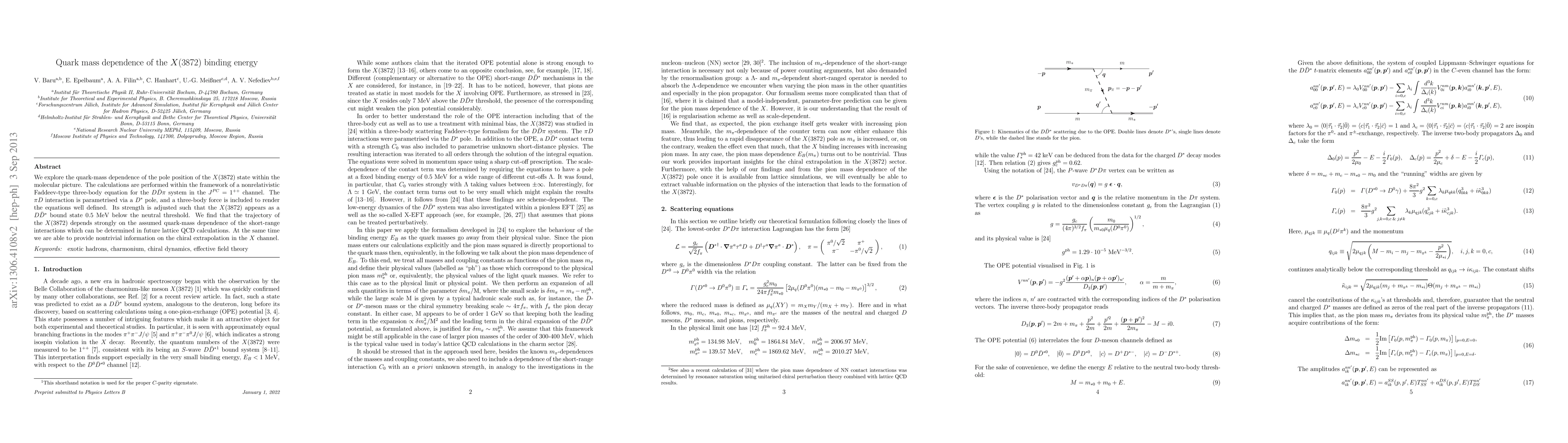 We explore the quark-mass dependence of the pole position of the X(3872) state within the molecular picture. The calculations are performed within the framework of a nonrelativistic Faddeev-type three-body equation for the $D\bar{D}\pi$ system in the $J^{PC}=1^{++}$ channel. The $\pi D$ interaction is parametrised via a $D^*$ pole, and a three-body force is included to render the equations well defined. Its strength is adjusted such that the X(3872) appears as a $D\bar{D}^*$ bound state 0.5 MeV below the neutral threshold. We find that the trajectory of the X(3872) depends strongly on the assumed quark-mass dependence of the short-range interactions which can be determined in future lattice QCD calculations. At the same time we are able to provide nontrivial information on the chiral extrapolation in the $X$ channel.