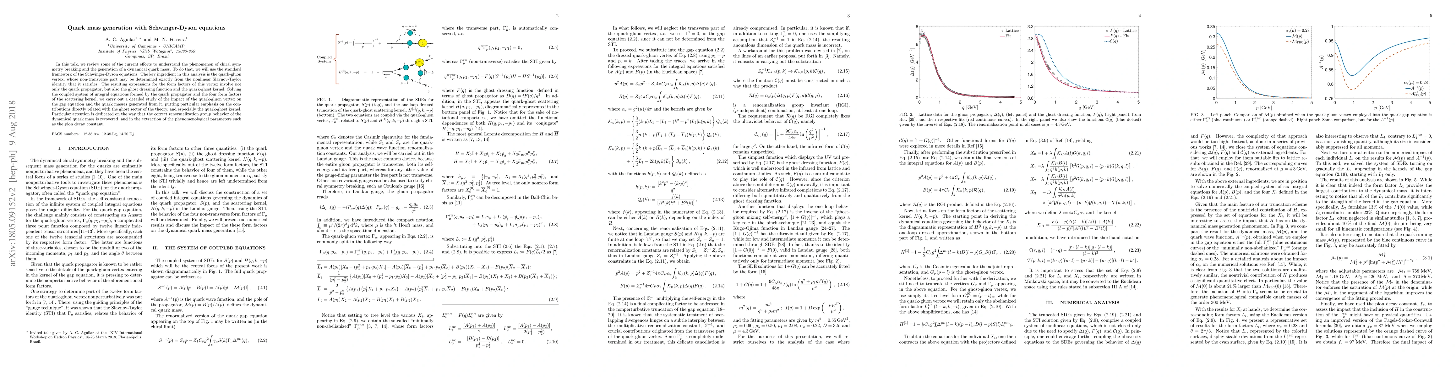 This paper explores chiral symmetry breaking and dynamical quark mass generation using Schwinger-Dyson equations, focusing on the quark-gluon vertex and its non-transverse part. The study highlights the role of the quark-ghost kernel and the ghost sector in generating quark masses, and examines the renormalization group behavior and phenomenological parameters like the pion decay constant.