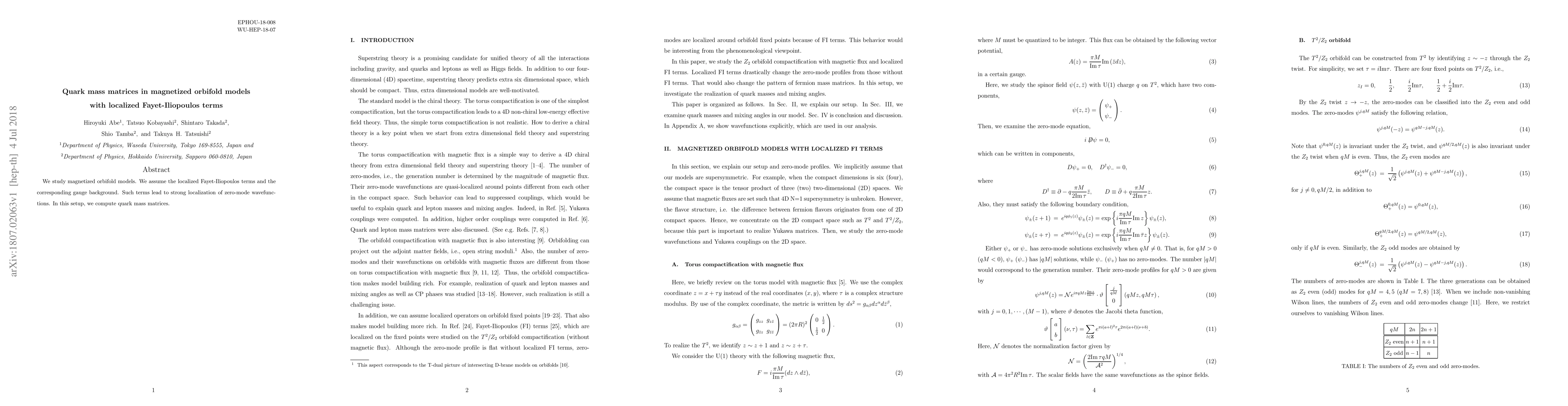 We study magnetized orbifold models. We assume the localized Fayet-Iliopoulos terms and the corresponding gauge background. Such terms lead to strong localization of zero-mode wavefunc- tions. In this setup, we compute quark mass matrices.