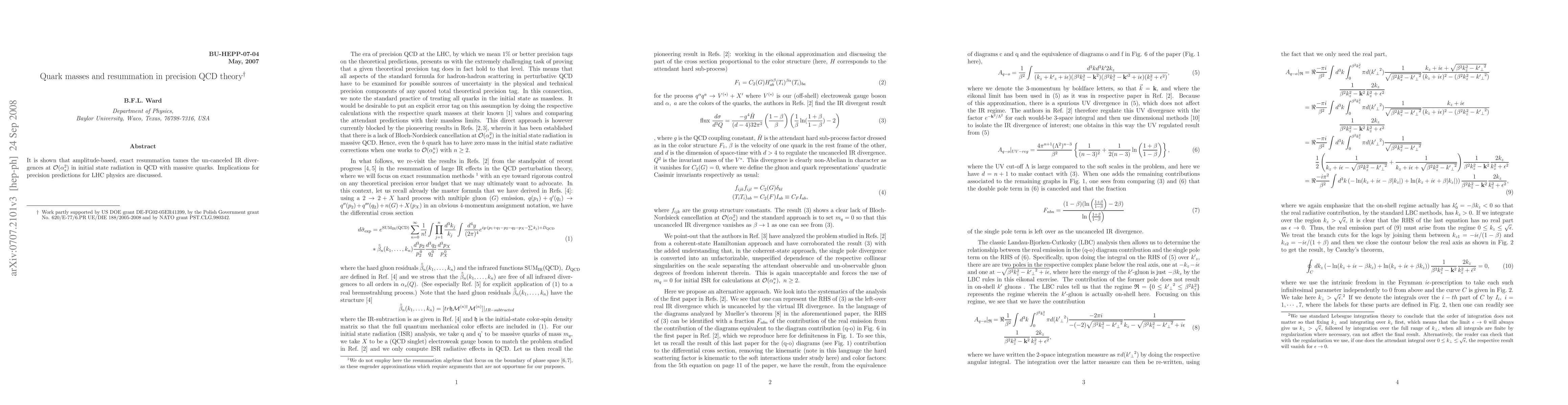 It is shown that amplitude-based, exact resummation tames the un-cancelled IR divergences at O(alpha_s^2) in initial state radiation in QCD with massive quarks. Implications for precision predictions for LHC physics are discussed.