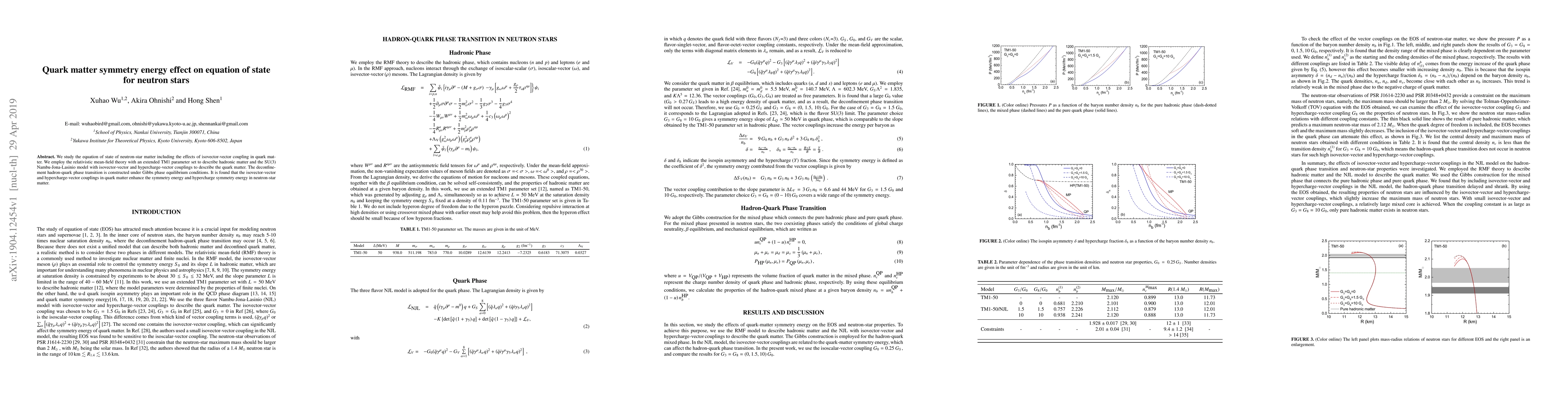 This paper investigates the equation of state for neutron stars, incorporating quark matter effects via isovector-vector coupling. It uses relativistic mean-field theory and the SU(3) Nambu-Jona-Lasinio model, finding that these couplings enhance symmetry and hypercharge energies in neutron-star matter.