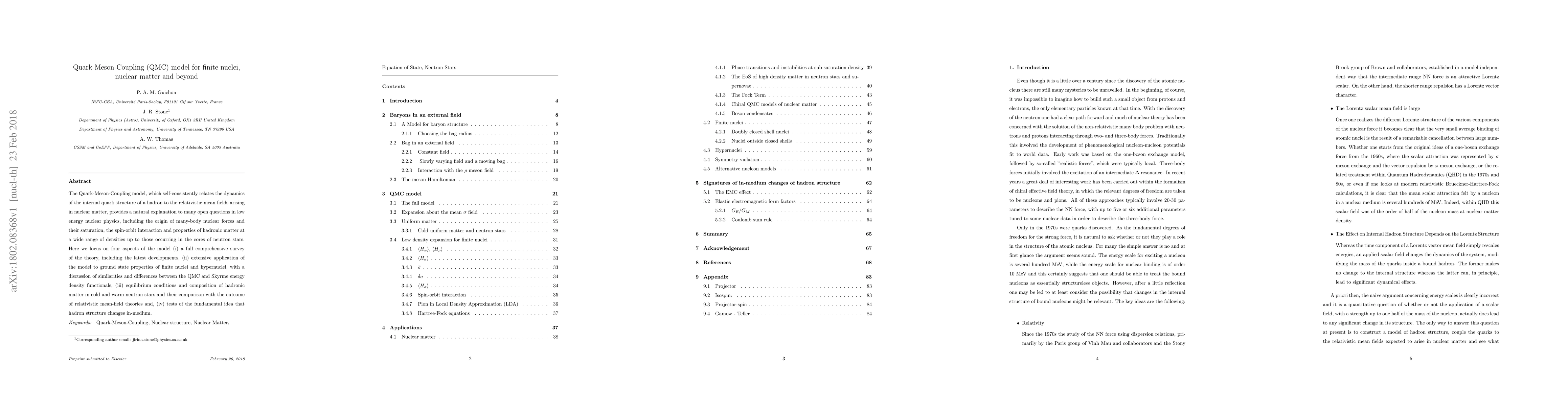 The Quark-Meson-Coupling model explains nuclear forces, spin-orbit interactions, and hadronic matter properties up to neutron star densities. It provides a natural explanation for various open questions in low-energy nuclear physics.