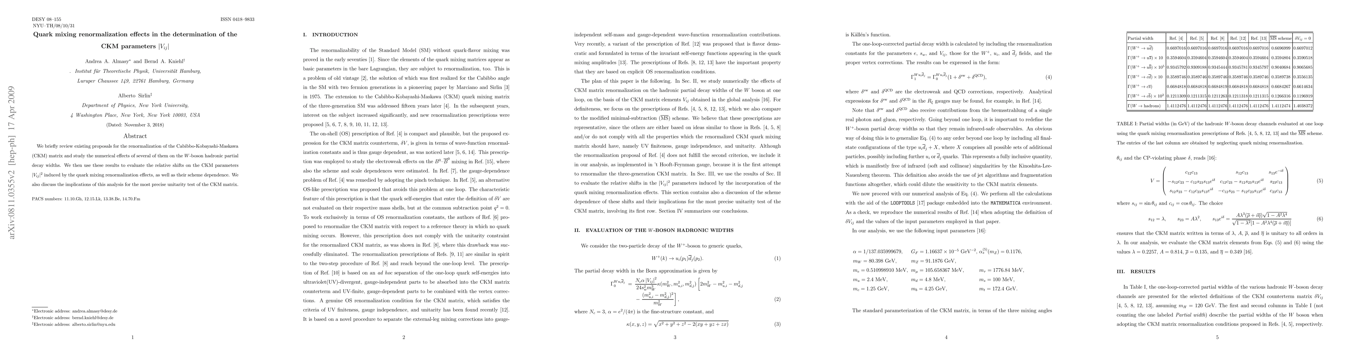 This paper reviews methods for renormalizing the CKM matrix and examines the impact of these methods on W-boson decay widths and the CKM parameters |V_{ij}|^2, highlighting scheme dependence and implications for unitarity tests.