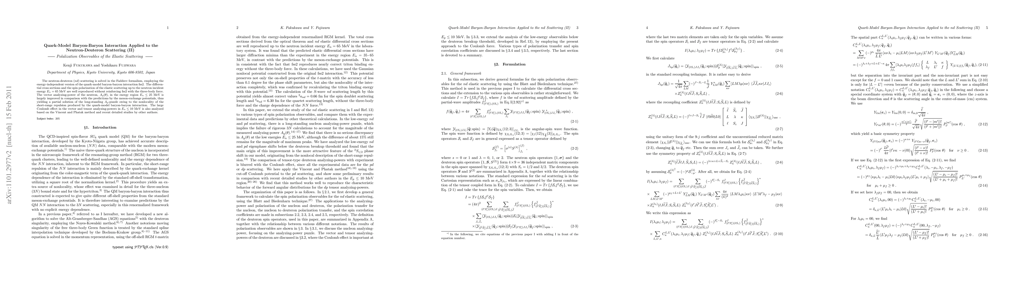 This paper applies the quark-model baryon-baryon interaction fss2 to neutron-deuteron scattering in the Faddeev formalism, successfully reproducing differential cross sections and spin polarizations without additional three-body forces. The model notably resolves the $A_y$-puzzle and provides improved predictions for vector analyzing-powers in low neutron energies.