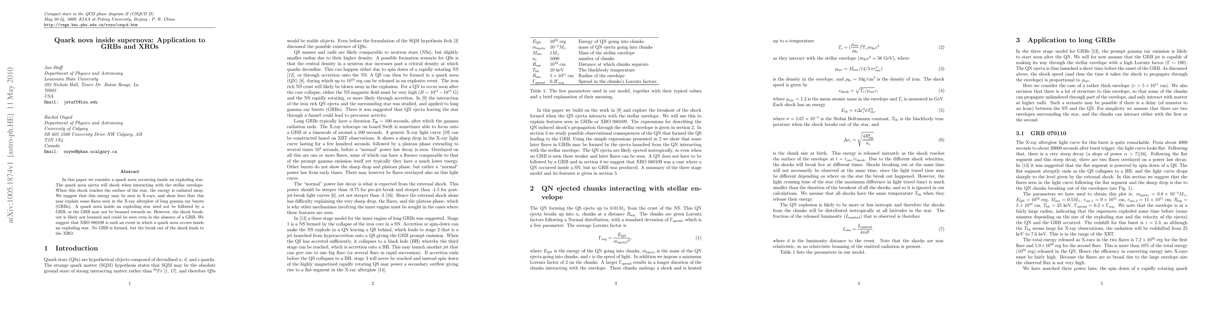 This paper explores the phenomenon of a quark nova within a supernova, proposing that the shock from the nova interacting with the stellar envelope could produce observable X-ray flares, potentially explaining some X-ray afterglows of long gamma-ray bursts (GRBs). It suggests that XRO 080109 may be an example of such an event where a quark nova occurs without producing a GRB.