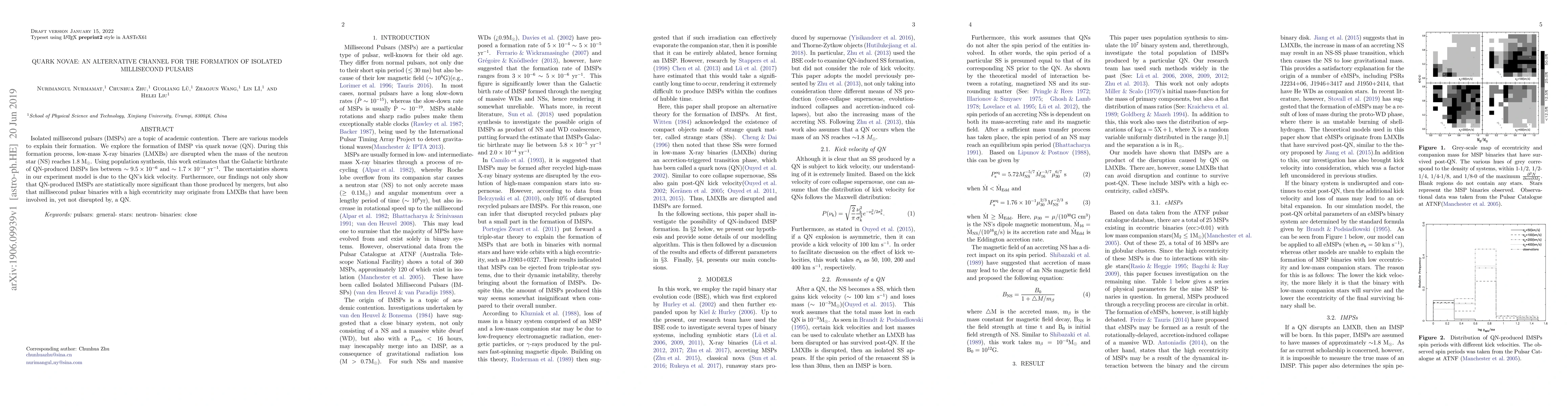 Isolated millisecond pulsars (IMSPs) are a topic of academic contention. There are various models to explain their formation. We explore the formation of IMSP via quark novae (QN). During this formation process, low-mass X-ray binaries (LMXBs) are disrupted when the mass of the neutron star (NS) reaches 1.8 $\rm M_\odot$. Using population synthesis, this work estimates that the Galactic birthrate of QN-produced IMSPs lies between $\sim 9.5\times10^{-6}$ and $\sim1.7\times10^{-4}$ $\rm yr^{-1}$. The uncertainties shown in our experiment model is due to the QN's kick velocity. Furthermore, our findings not only show that QN-produced IMSPs are statistically more significant than those produced by mergers, but also that millisecond pulsar binaries with a high eccentricity may originate from LMXBs that have been involved in, yet not disrupted by, a QN.