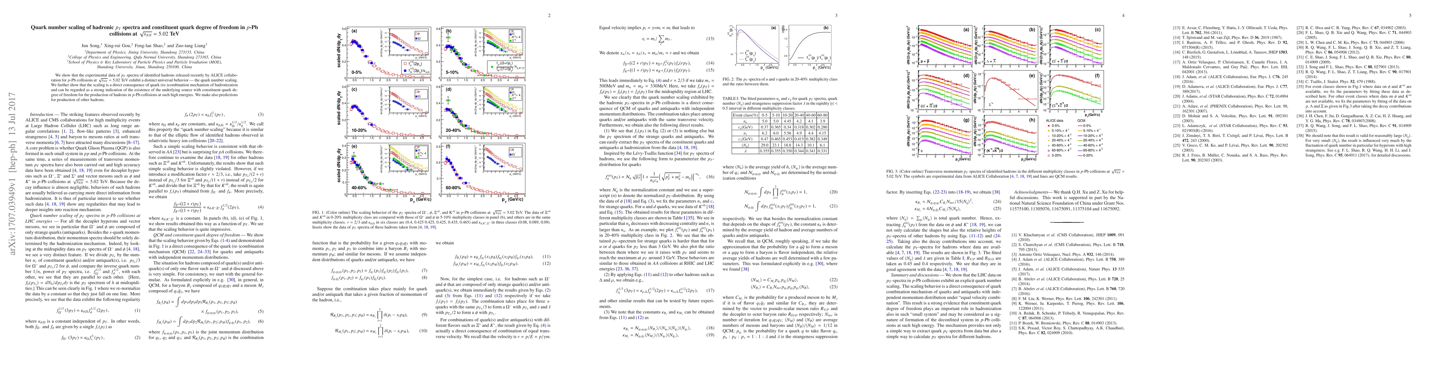 This paper demonstrates that the $p_T$ spectra of identified hadrons from $p$-Pb collisions at $\sqrt{s_{NN}}=5.02$ TeV follow a universal quark number scaling, indicating a quark recombination mechanism and suggesting the presence of a constituent quark degree of freedom in the underlying source. Predictions for the production of other hadrons are also provided.