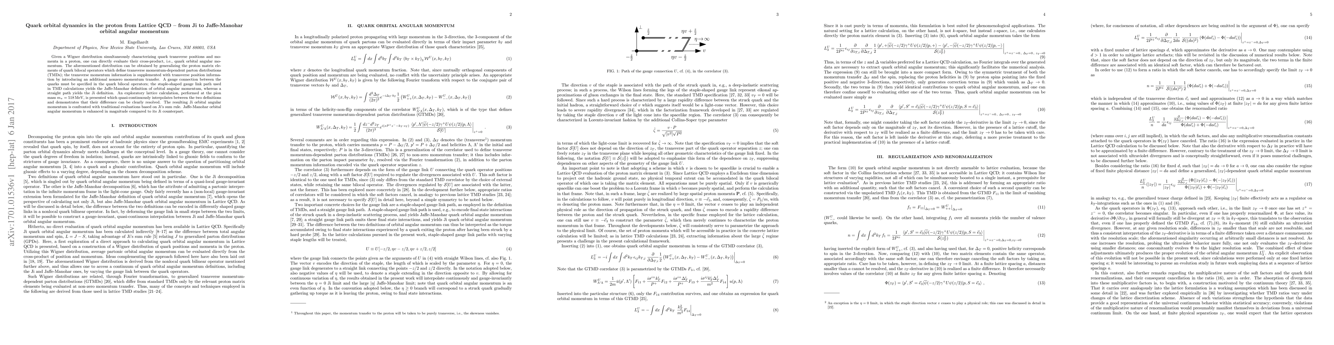 This paper investigates quark orbital dynamics in the proton using lattice QCD, exploring the difference between the Ji and Jaffe-Manohar definitions of orbital angular momentum through a lattice calculation. The study finds that the Jaffe-Manohar definition yields a larger orbital angular momentum compared to the Ji definition.