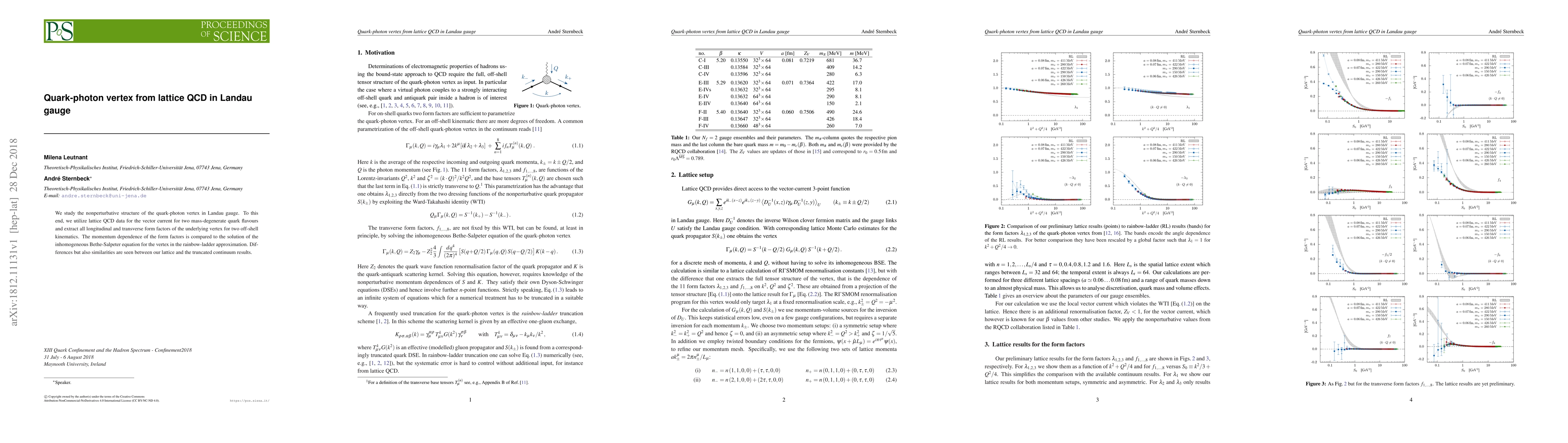 We study the nonperturbative structure of the quark-photon vertex in Landau gauge. To this end, we utilize lattice QCD data for the vector current for two mass-degenerate quark flavours and extract all longitudinal and transverse form factors of the underlying vertex for two off-shell kinematics. The momentum dependence of the form factors is compared to the solution of the inhomogeneous Bethe-Salpeter equation for the vertex in the rainbow-ladder approximation. Differences but also similarities are seen between our lattice and the truncated continuum results.