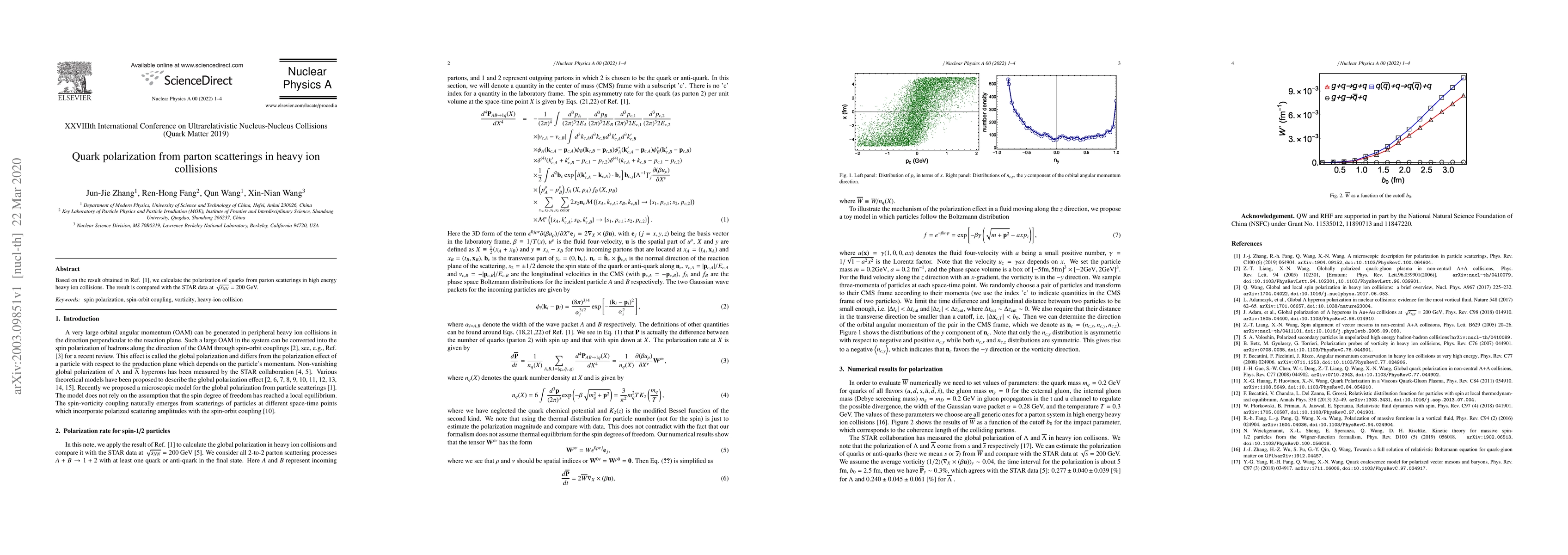 This paper calculates quark polarization from parton scatterings in high-energy heavy ion collisions, extending previous work, and compares the findings with STAR data at $\sqrt{s_{NN}}=200$ GeV. The results provide insights into the dynamics of quark interactions in such collisions.