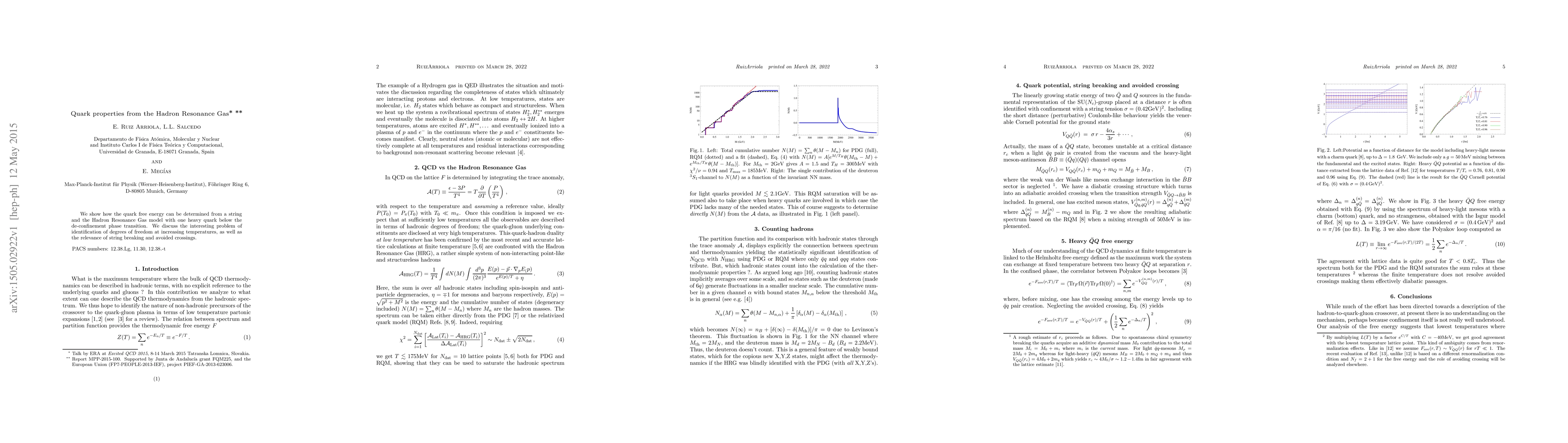 Researchers used a string model to determine quark free energy from the Hadron Resonance Gas model, focusing on temperature-dependent degrees of freedom and string breaking.