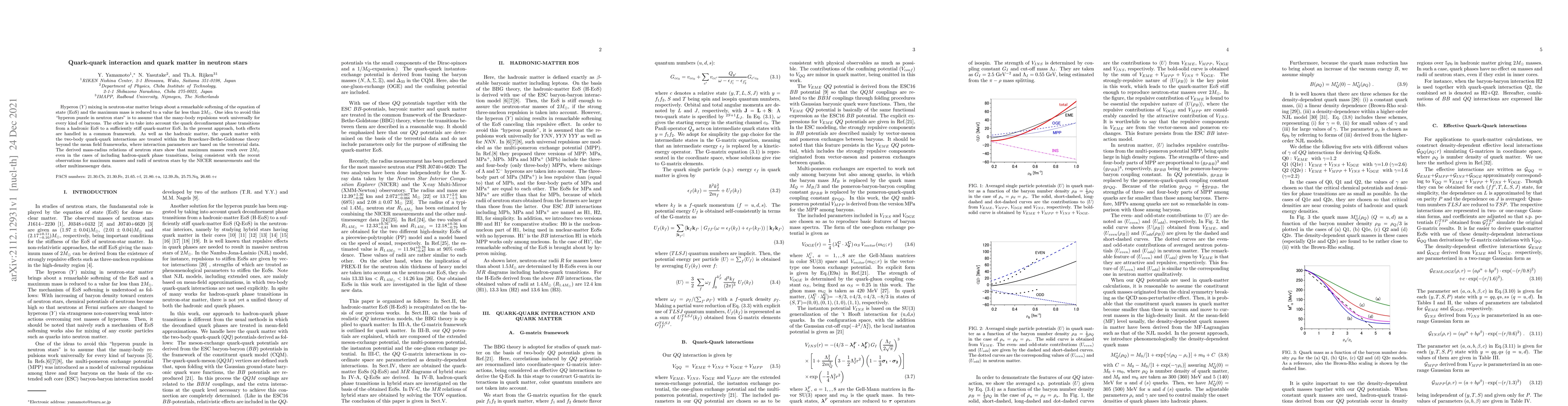 This paper investigates the quark-quark interactions and quark matter in neutron stars, proposing that quark deconfinement and many-body repulsions can resolve the "hyperon puzzle." It uses the Brueckner-Bethe-Goldstone theory to model quark matter and finds that maximum neutron star masses exceed $2M_{\odot}$, aligning with recent observations.
