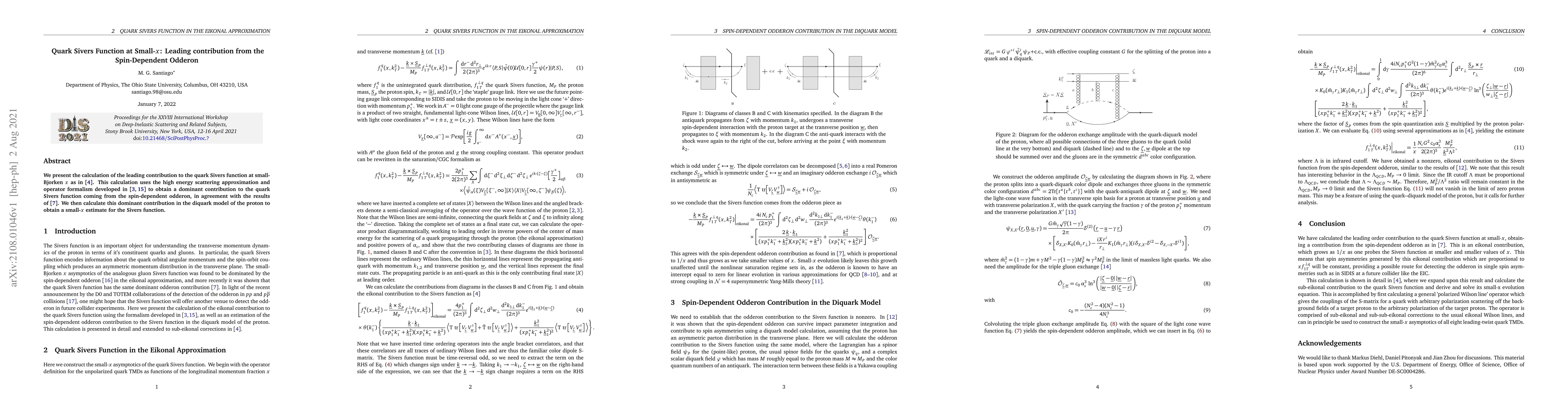 Researchers calculate the leading contribution to the quark Sivers function at small-Bjorken x values, finding it comes primarily from a spin-dependent odderon, with implications for our understanding of proton structure and particle interactions.