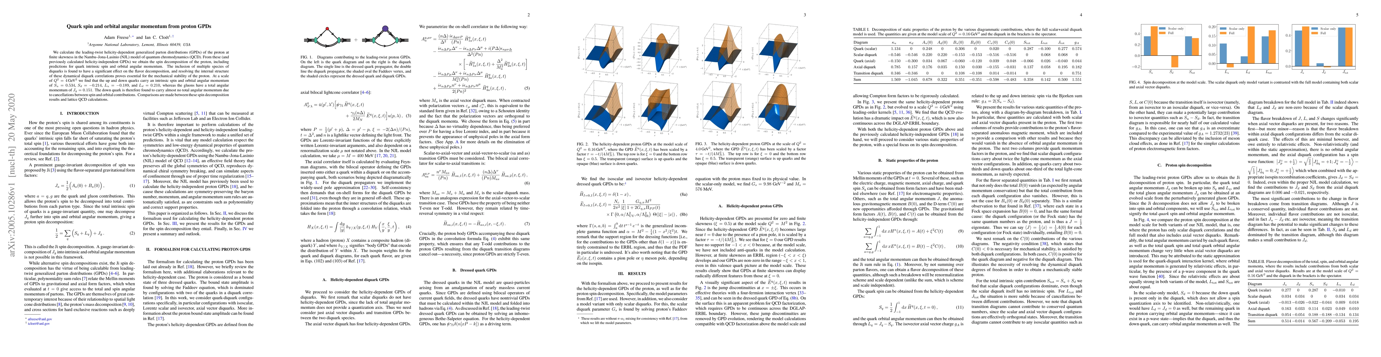 We calculate the leading-twist helicity-dependent generalized parton distributions (GPDs) of the proton at finite skewness in the Nambu--Jona-Lasinio (NJL) model of quantum chromodynamics (QCD). From these (and previously calculated helicity-independent GPDs) we obtain the spin decomposition of the proton, including predictions for quark intrinsic spin and orbital angular momentum. The inclusion of multiple species of diquarks is found to have a significant effect on the flavor decomposition, and resolving the internal structure of these dynamical diquark correlations proves essential for the mechanical stability of the proton. At a scale of $Q^2=4\,$GeV$^2$ we find that the up and down quarks carry an intrinsic spin and orbital angular momentum of $S_u=0.534$, $S_d=-0.214$, $L_u=-0.189$, and $L_d=0.210$, whereas the gluons have a total angular momentum of $J_g=0.151$. The down quark is therefore found to carry almost no total angular momentum due to cancellations between spin and orbital contributions. Comparisons are made between these spin decomposition results and lattice QCD calculations.