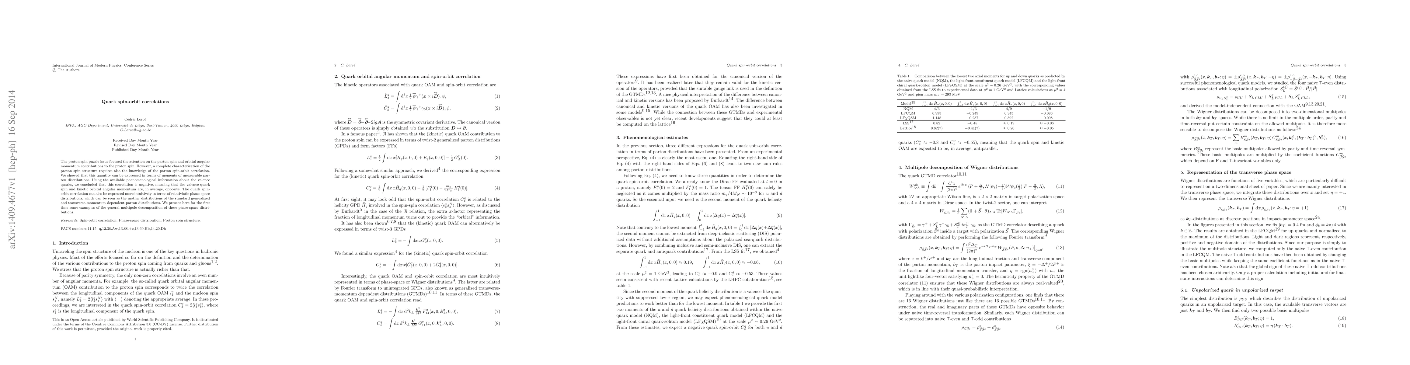 The proton spin puzzle issue focused the attention on the parton spin and orbital angular momentum contributions to the proton spin. However, a complete characterization of the proton spin structure requires also the knowledge of the parton spin-orbit correlation. We showed that this quantity can be expressed in terms of moments of measurable parton distributions. Using the available phenomenological information about the valence quarks, we concluded that this correlation is negative, meaning that the valence quark spin and kinetic orbital angular momentum are, in average, opposite. The quark spin-orbit correlation can also be expressed more intuitively in terms of relativistic phase-space distributions, which can be seen as the mother distributions of the standard generalized and transverse-momentum dependent parton distributions. We present here for the first time some examples of the general multipole decomposition of these phase-space distributions.