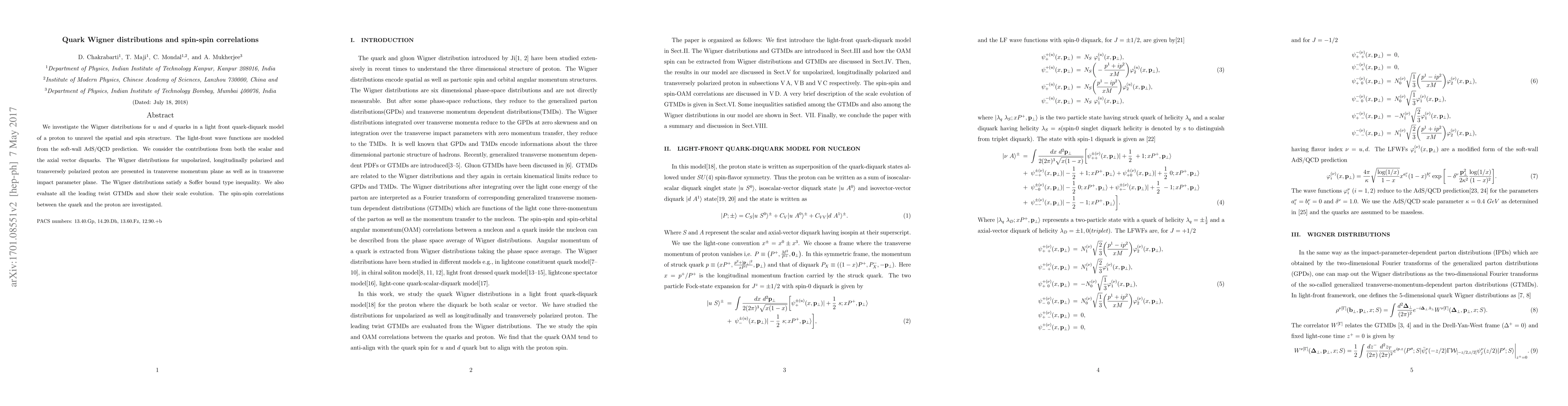 This paper explores quark Wigner distributions in a proton using a light-front quark-diquark model, focusing on the spatial and spin structure. It examines contributions from scalar and axial vector diquarks, evaluates leading twist generalized transverse momentum-dependent distributions (GTMDs), and investigates spin-spin correlations between quarks and the proton.