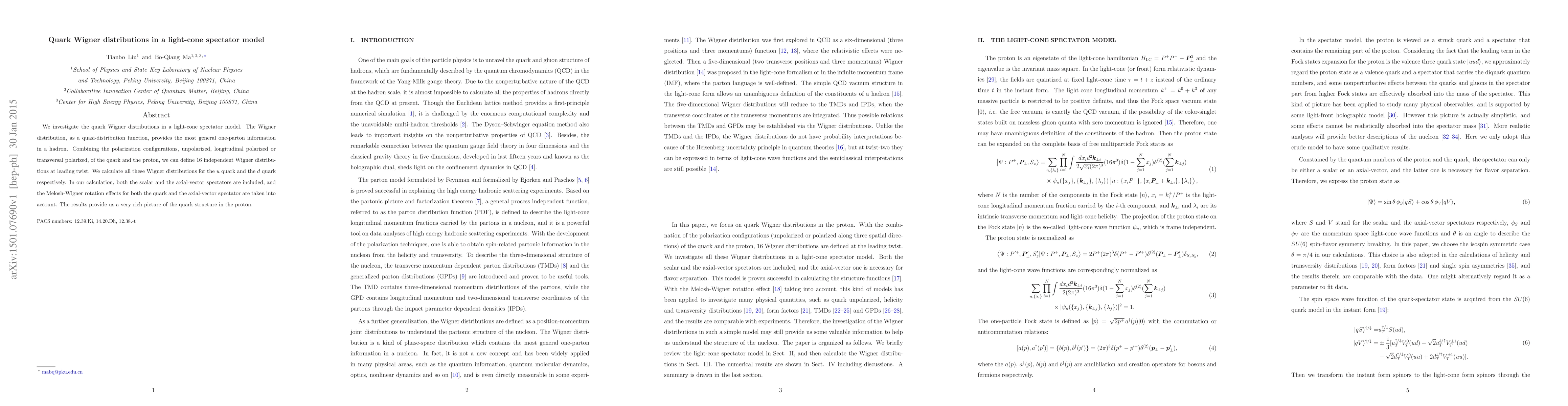 This paper investigates quark Wigner distributions in a light-cone spectator model, providing comprehensive one-parton information for $u$ and $d$ quarks in a proton. It calculates 16 independent distributions, considering various polarization states and spectator effects, offering detailed insights into the quark structure within the proton.